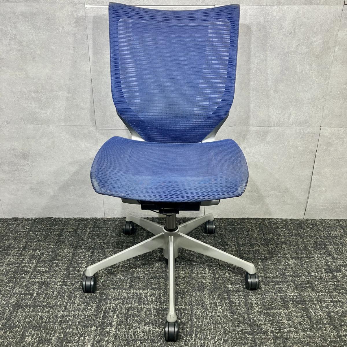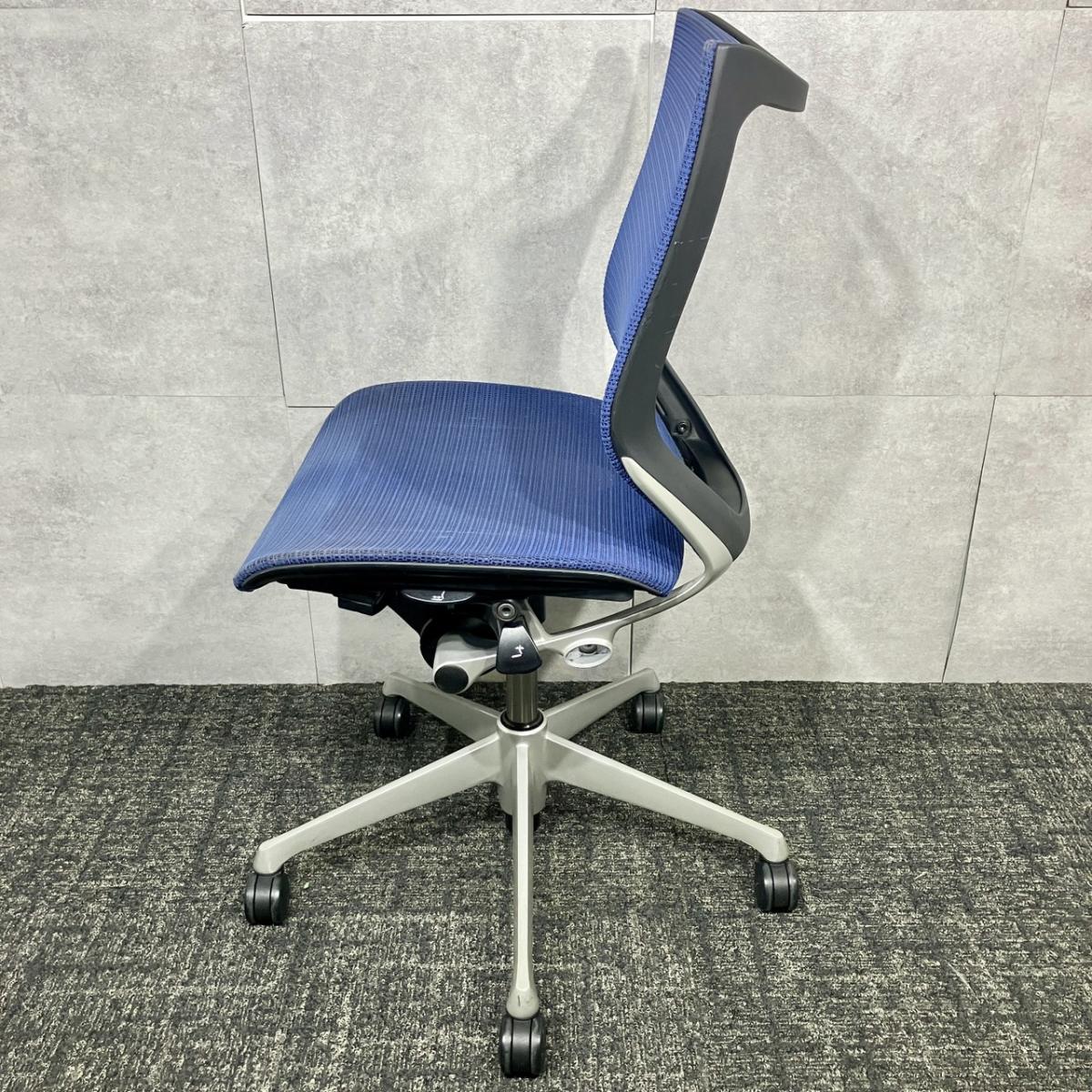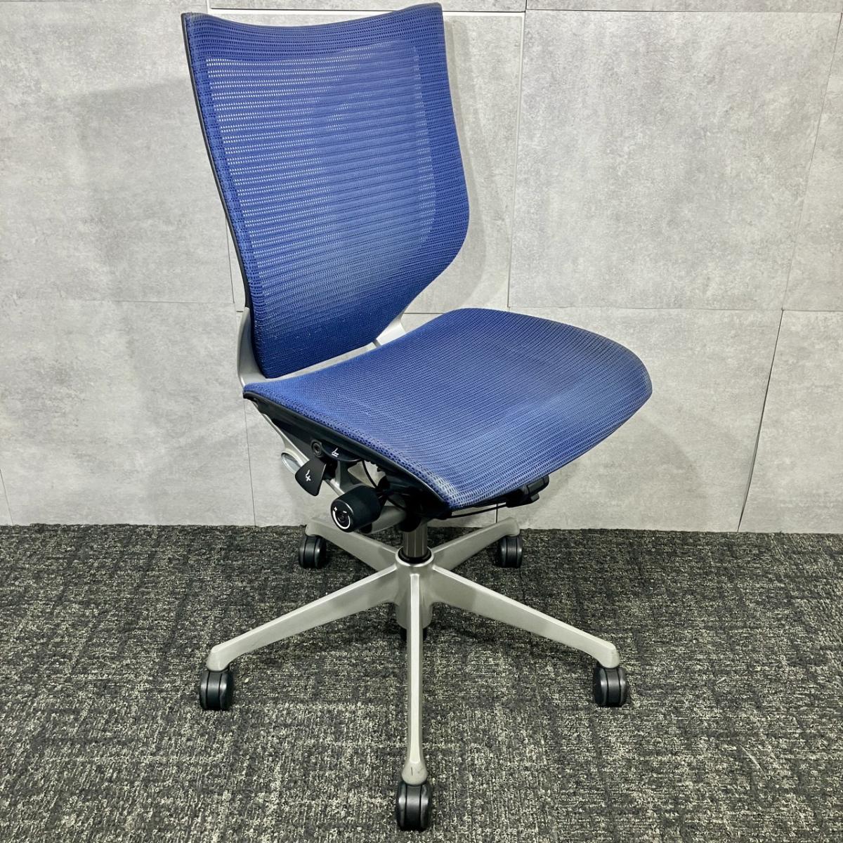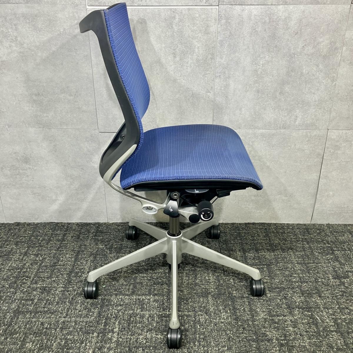 【福岡倉庫在庫】【オカムラ製定番チェア!】■オカムラ バロンチェア 肘無 ミディアムブルー ローバック シルバーフレーム ■良い椅子は腰を守る投資です!【Okamura Baron】