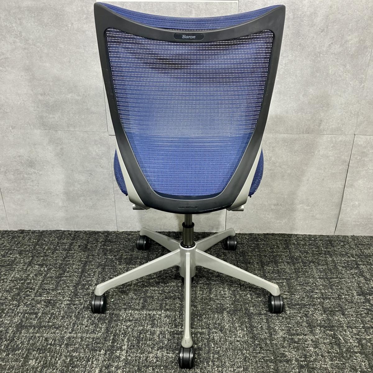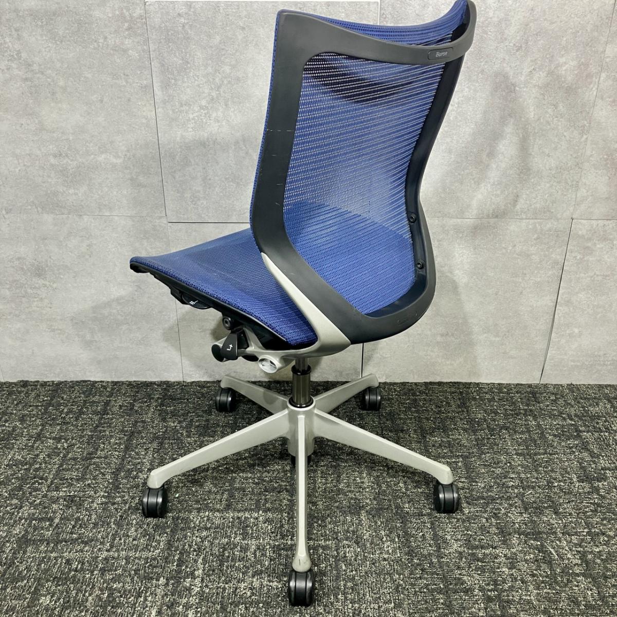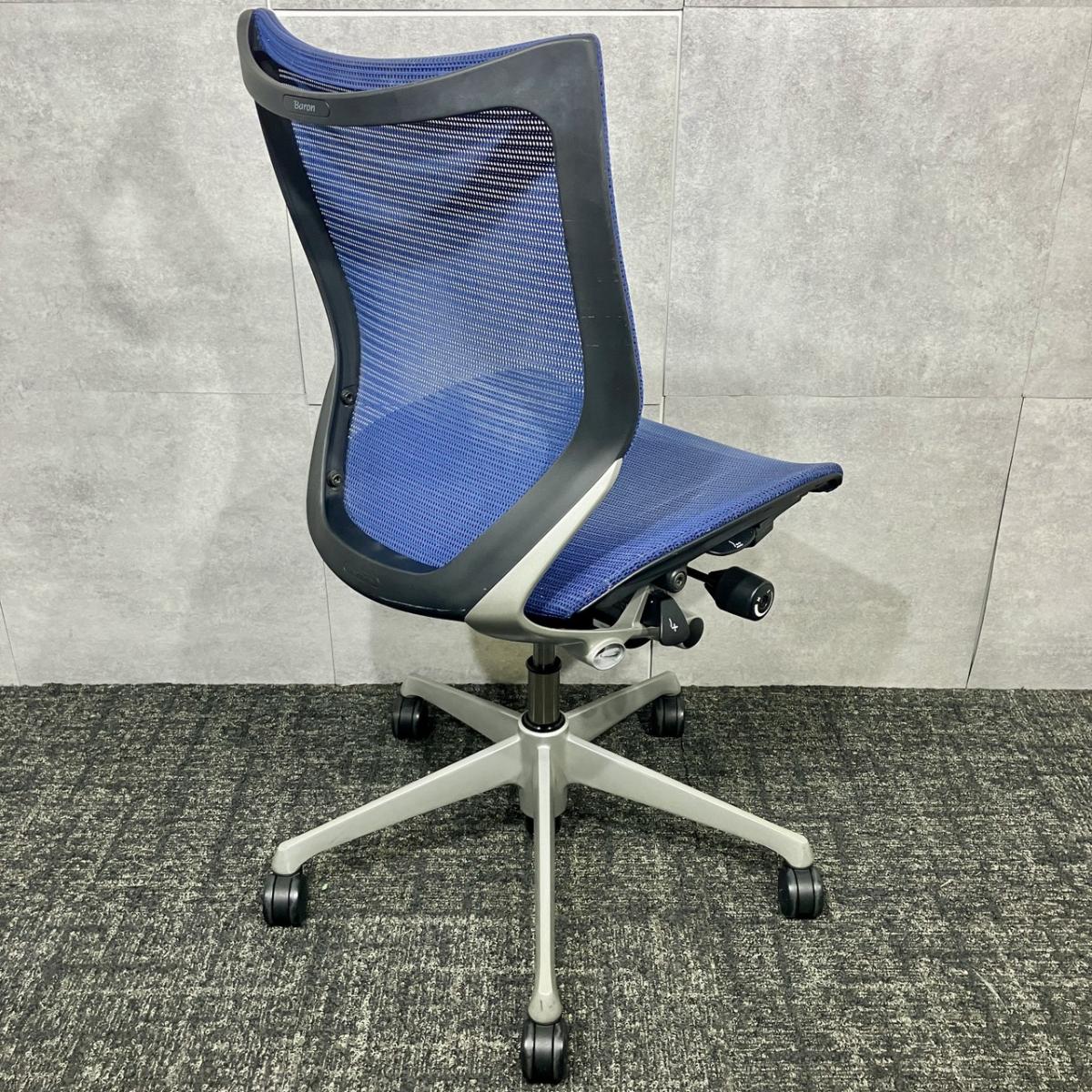 【長時間の着座でも疲れにくいサポート感! 大人気の高級オフィスチェア!】■オカムラ(okamura)製 バロンチェア(Baron) 肘無し ローバック ■ブルー ■メッシュ背面×メッシュ座面【ベストなポジションが得られる先進設計!】【入替セールにつき30%OFF!】
