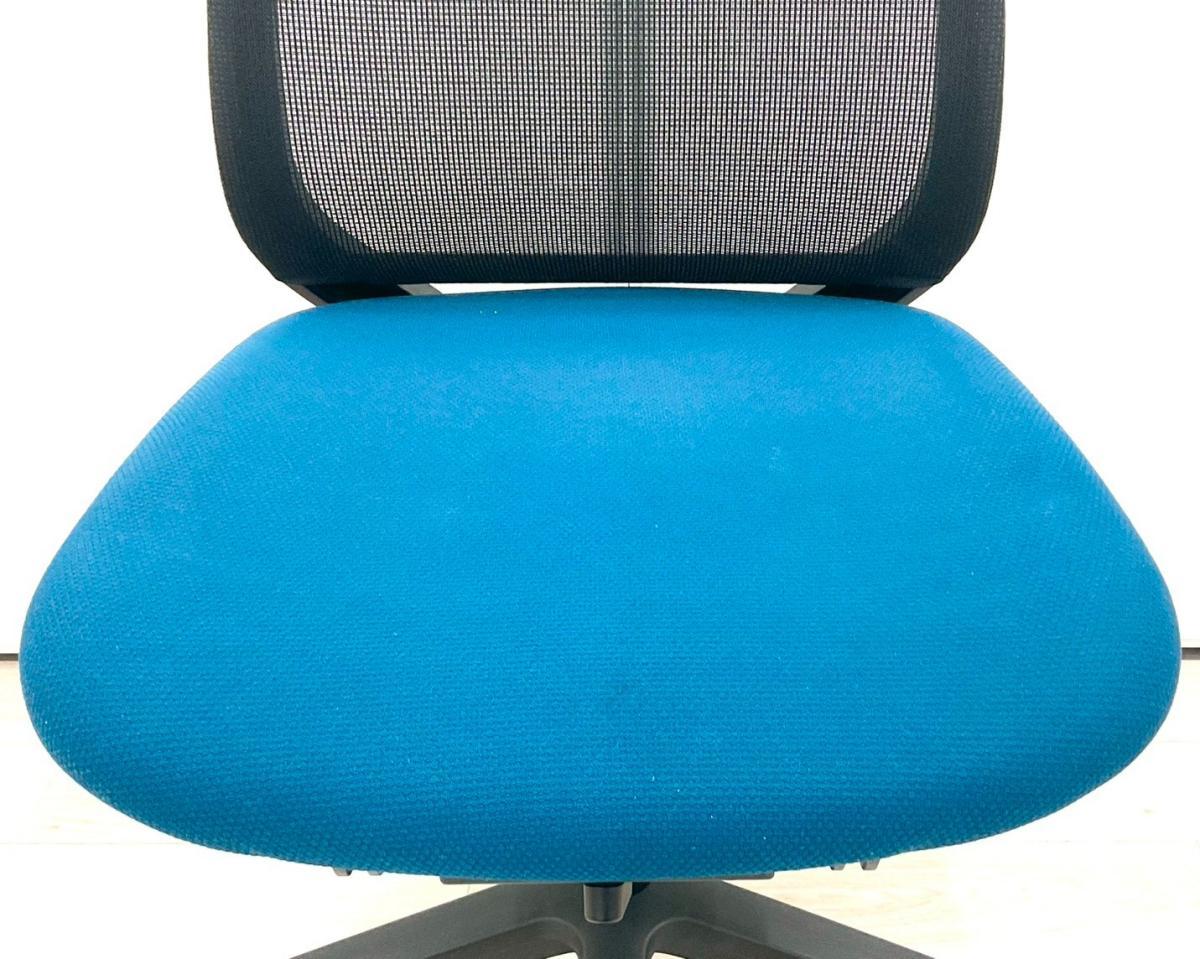 【テレワークにも最適!快適な座り心地と充実機能!】■コクヨ(KOKUYO)製 ミトラ(Mitra)チェア 肘無し ローバック 背面メッシュ ■背面:ブラック×座面:ターコイズブルー 【弊社使用欄:A01061769】