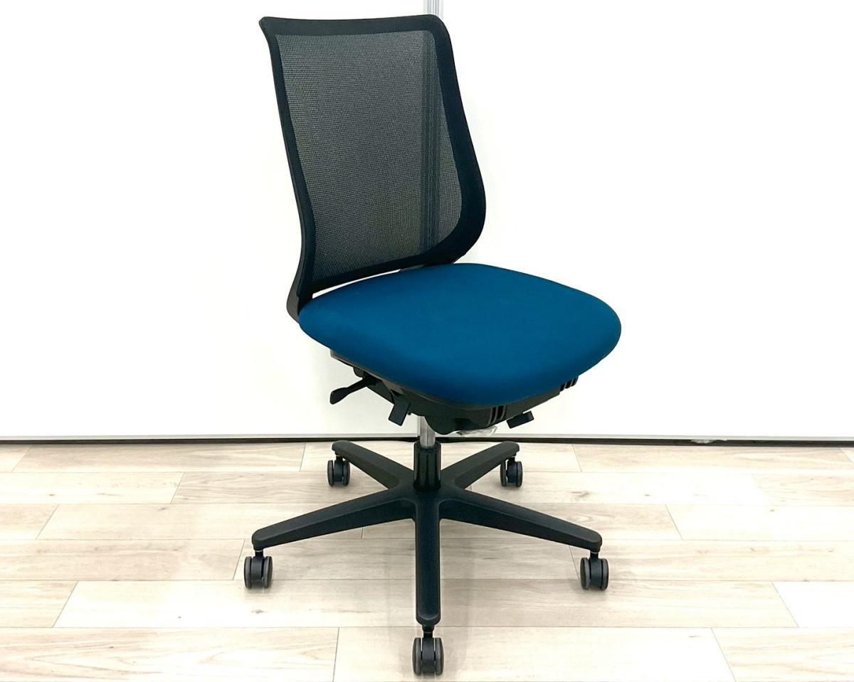 コクヨ ミトラ プルシアンブルー×ブラックフレーム 肘無しモデル スタンダードバック(メッシュ)