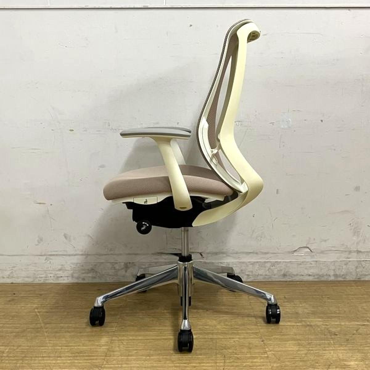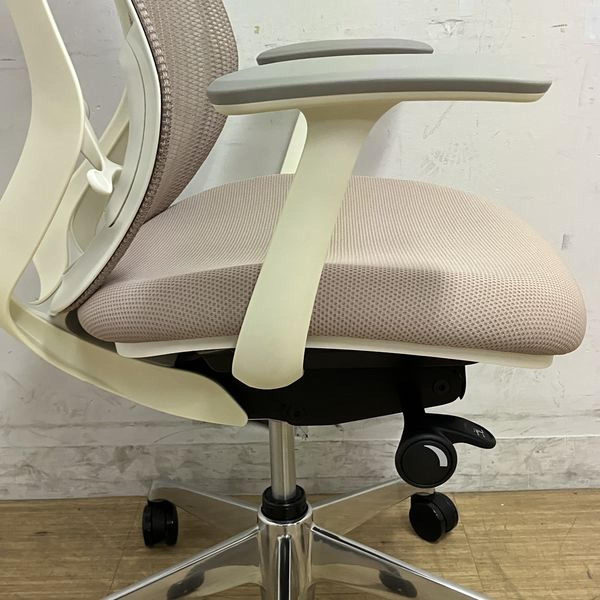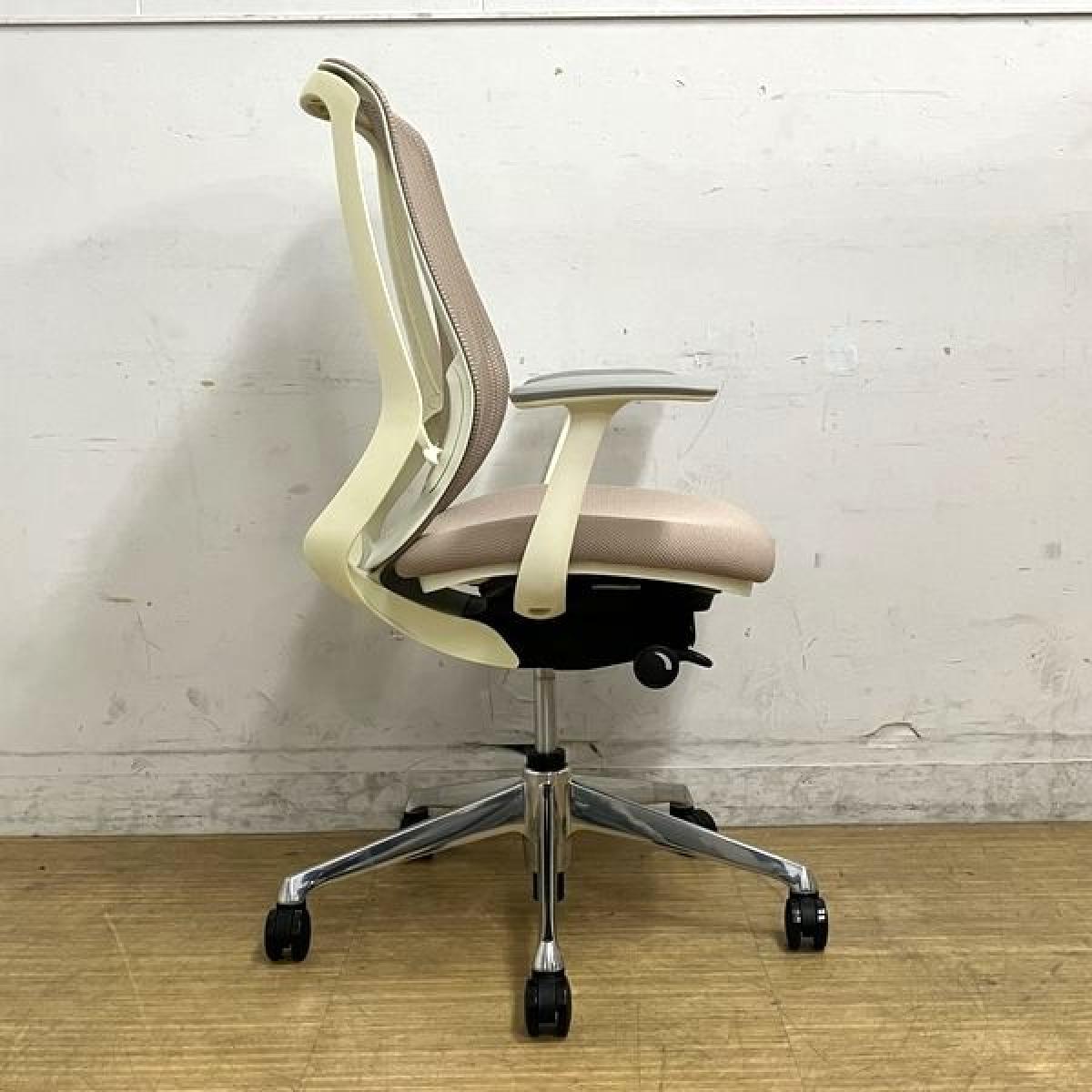 オカムラ シルフィー ハイバック 肘付きチェア ベージュ×ホワイトフレーム 前傾機能付きの人気シリーズ 在宅ワークにも最適 ※フレームに強い日焼けあり- 名古屋千種店