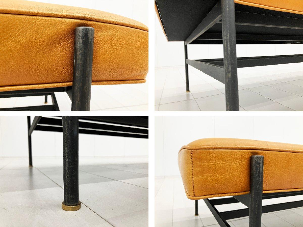 無骨なスチールフレームとクッション性のある座面を組み合わせた、インダストリアルな雰囲気が魅力の一台。直線的でシンプルな構造ながら、素材の質感が際立つデザインに仕上げられています。