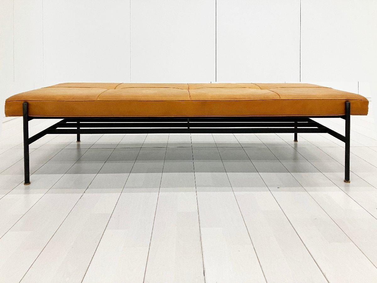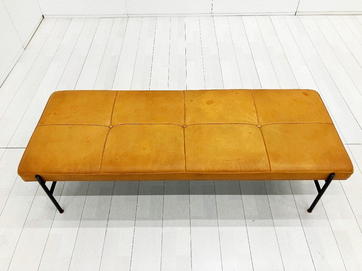 キャメルカラーの張地は使い込むほどに風合いの変化も楽しめ、空間に温かみをプラス。ロングサイズのベンチタイプで、複数人での使用はもちろん、ラウンジ的な使い方にも適しています。