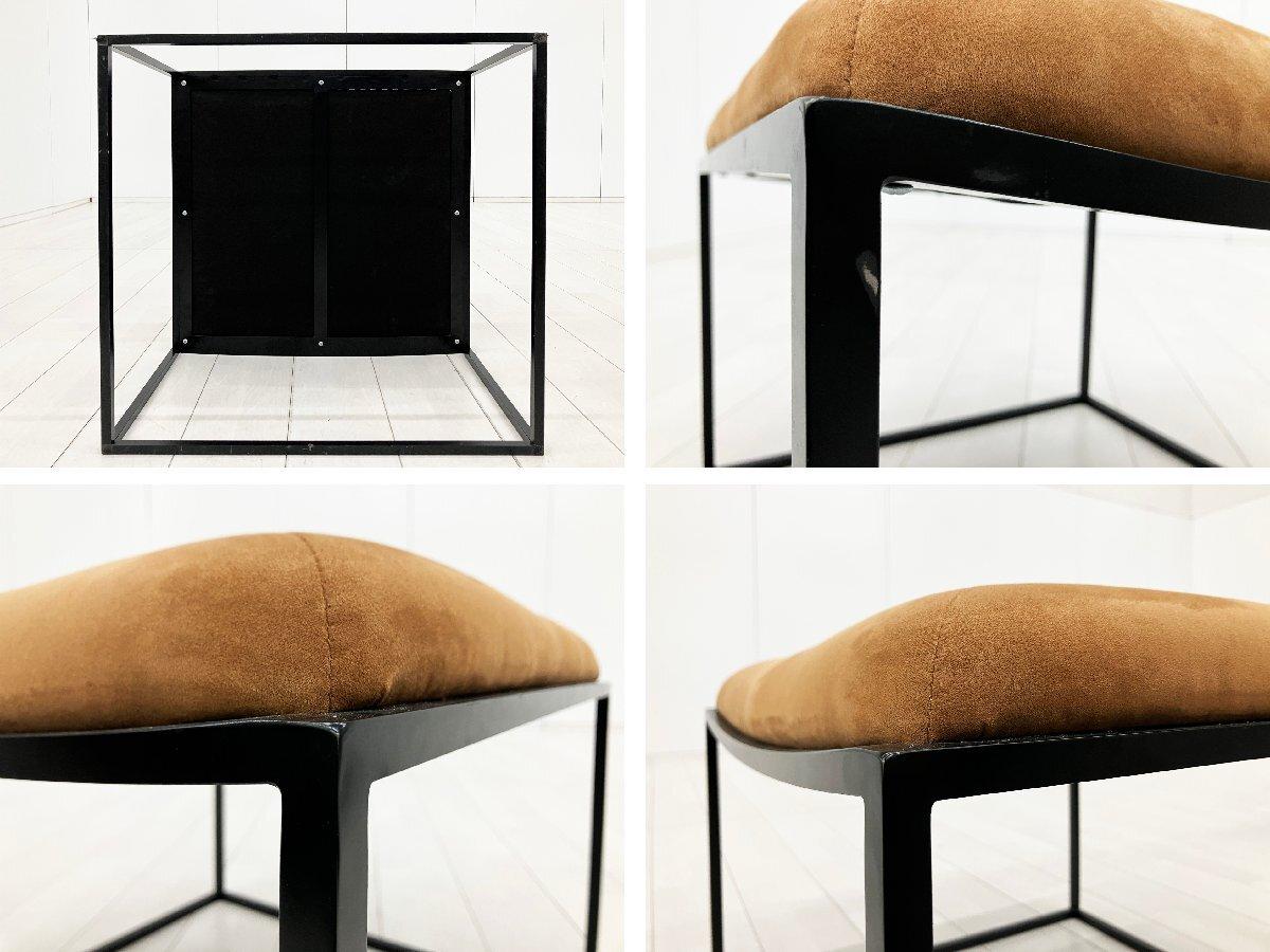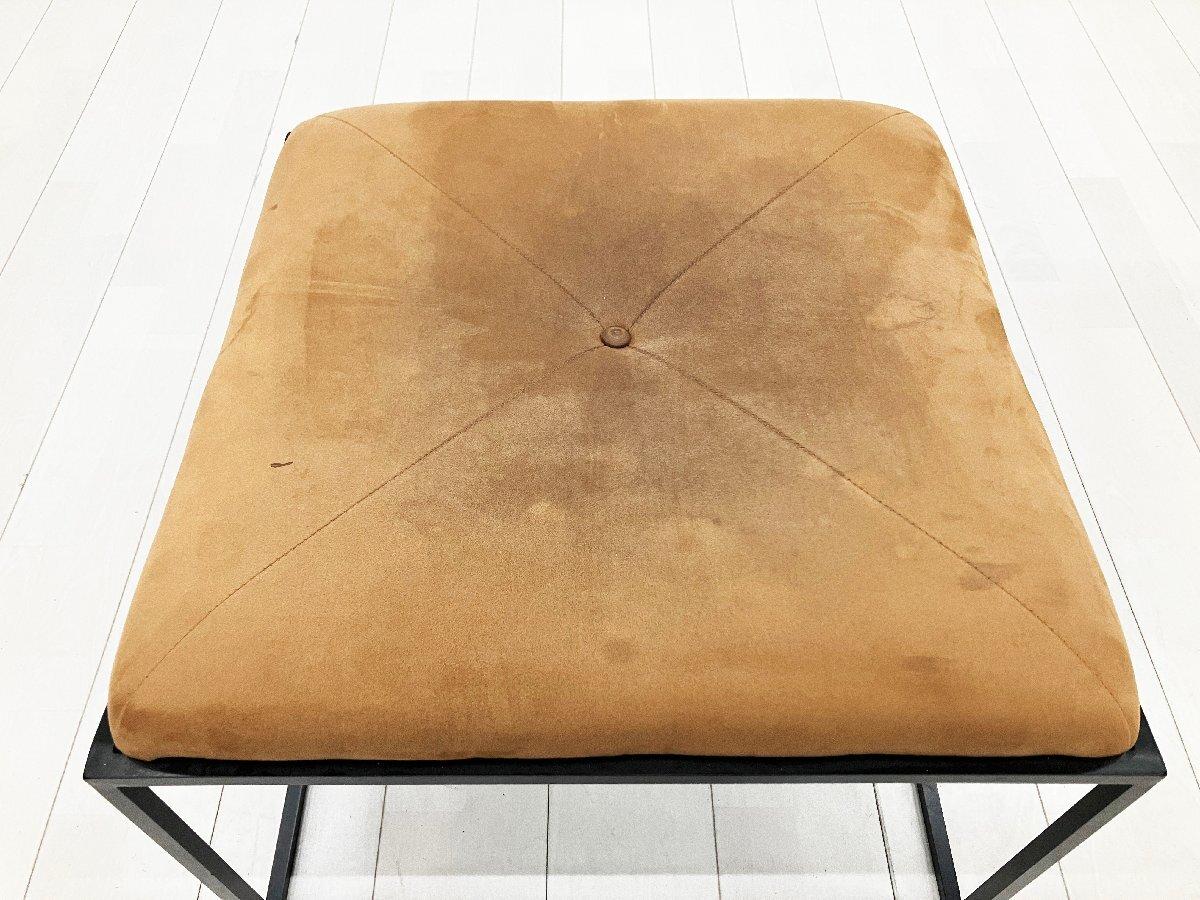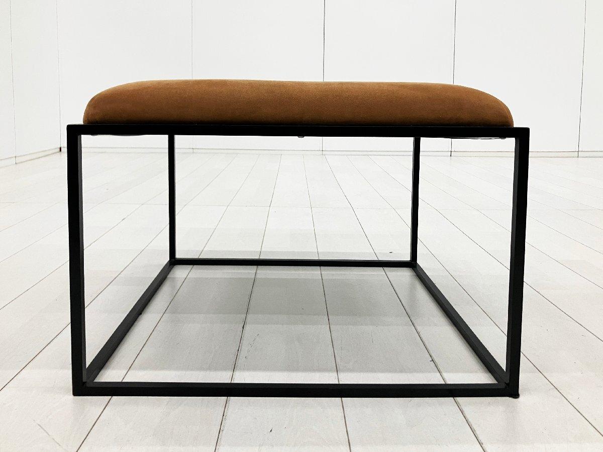 シンプルなスクエアフォルムに、細身のスチールフレームを組み合わせたミニマルなデザインが特徴のメーカー不明のオットマン。