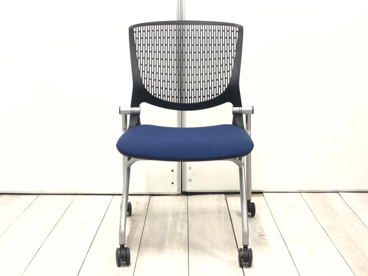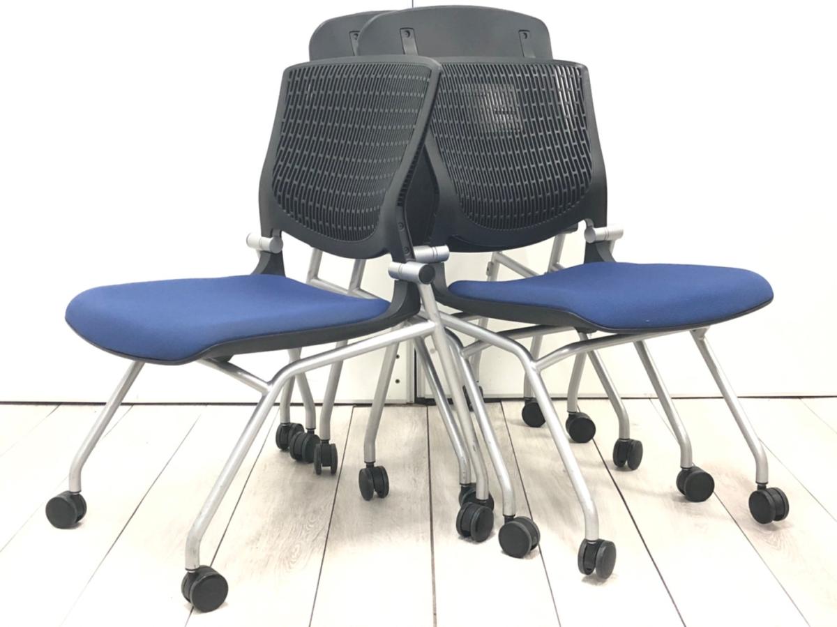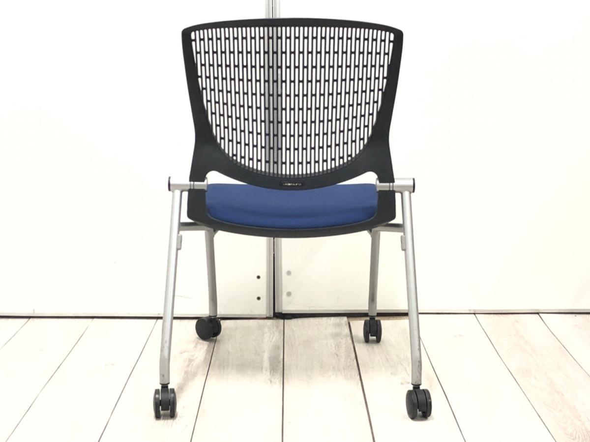 【スタイリッシュで快適な座り心地!】■オカムラ(okamura)製 グラータシリーズ ネスティングチェア ■ブルー×ブラックシェル