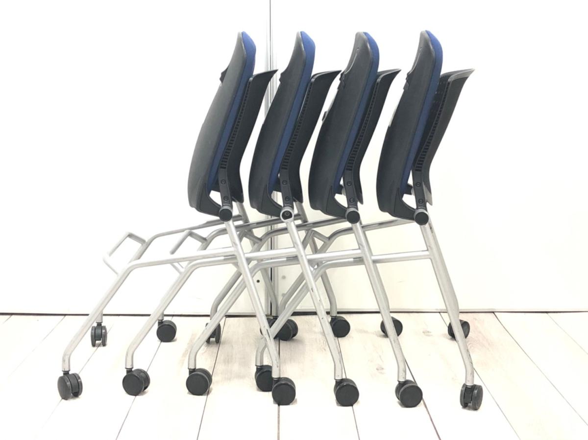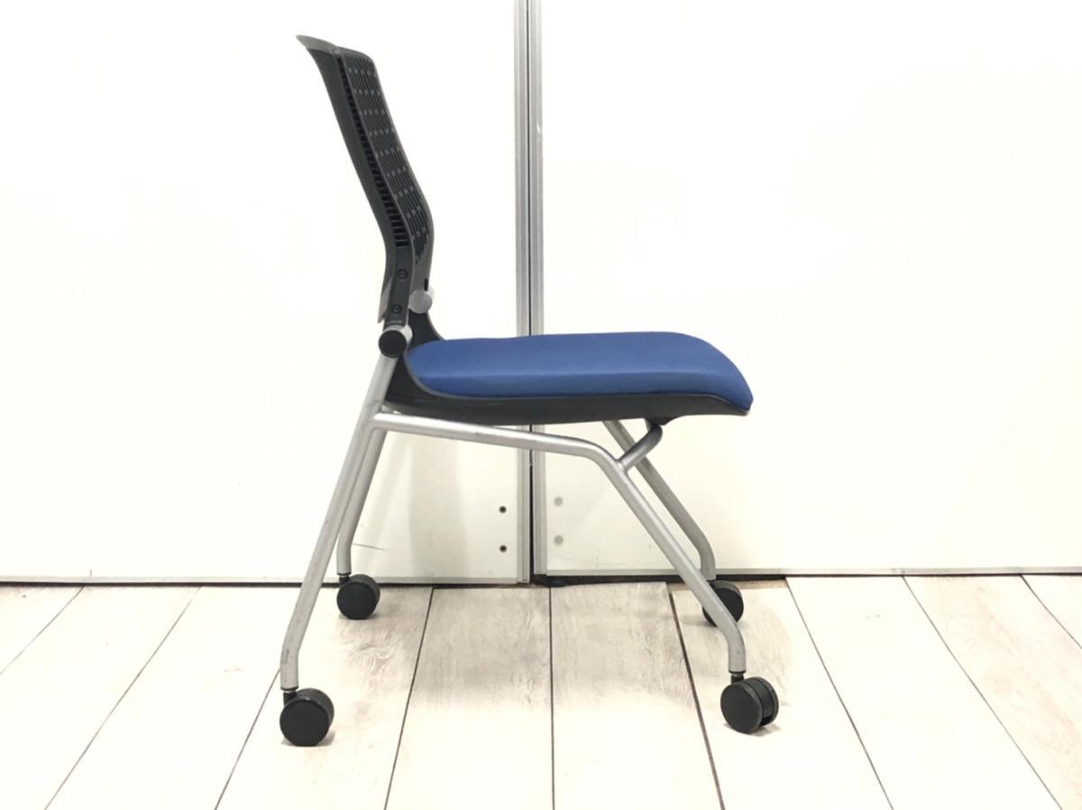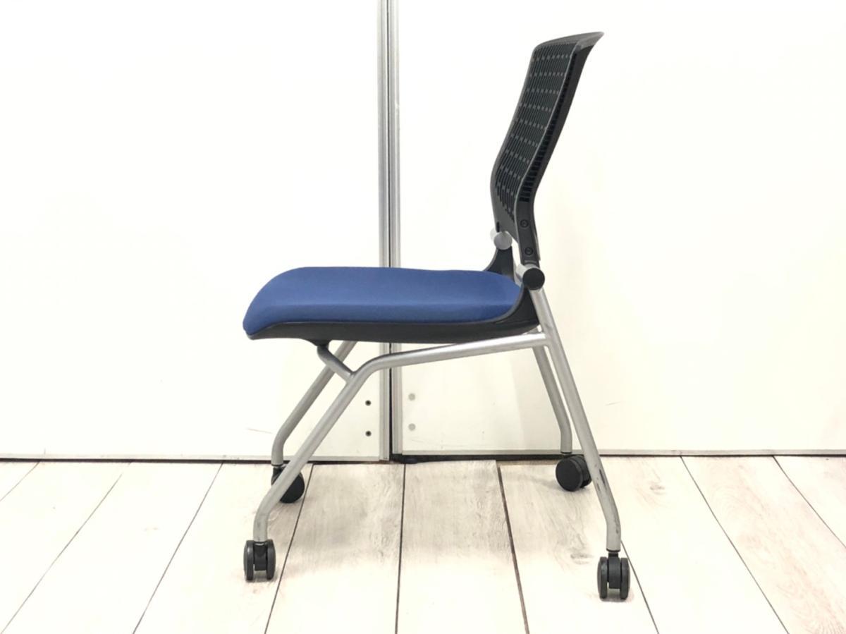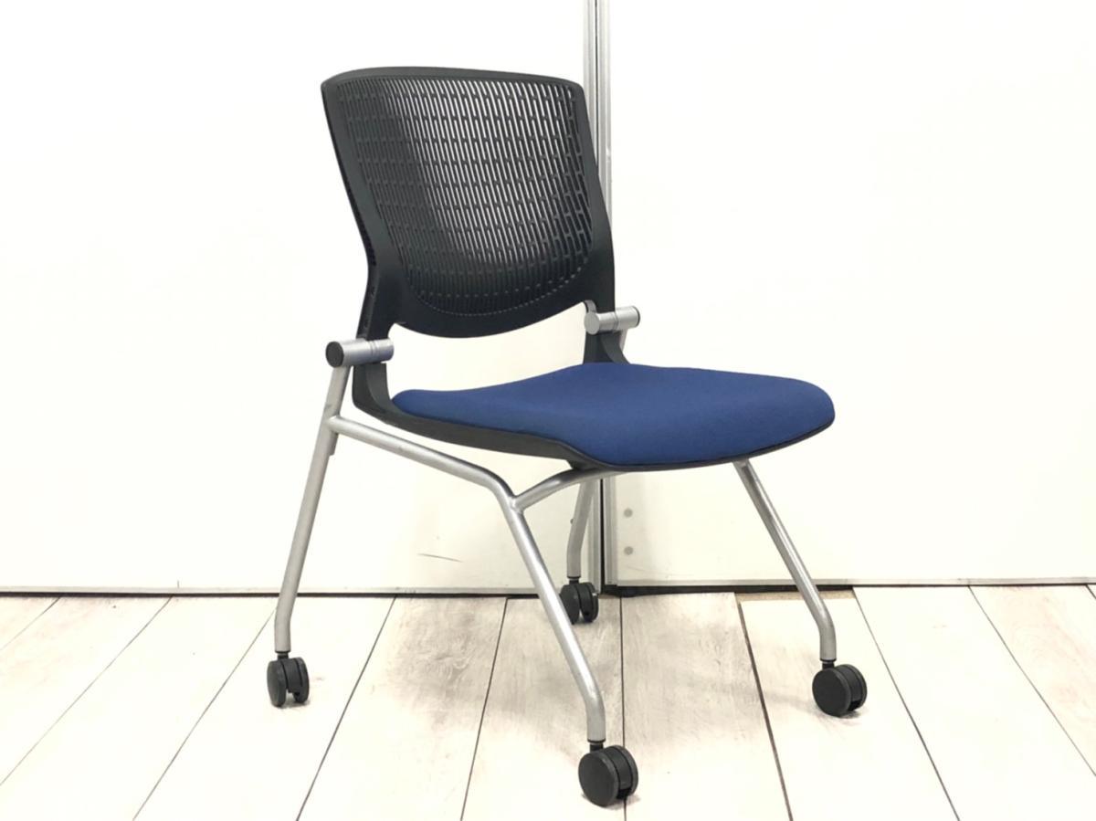 【スタイリッシュで快適な座り心地!】■オカムラ(okamura)製 グラータシリーズ ネスティングチェア ■ブルー×ブラックシェル
