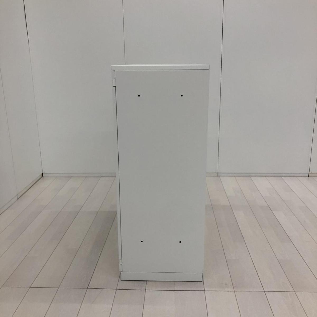 観音開きタイプの書庫で、A4ファイルを縦に3段収納可能な両開きタイプ。