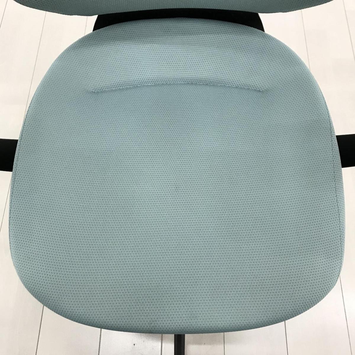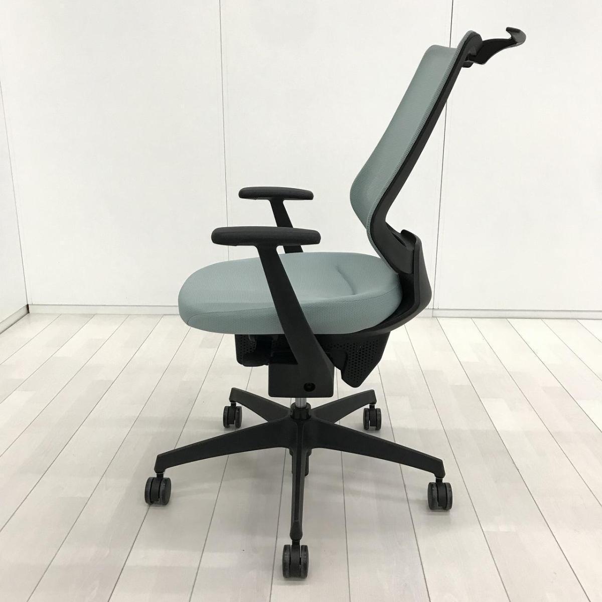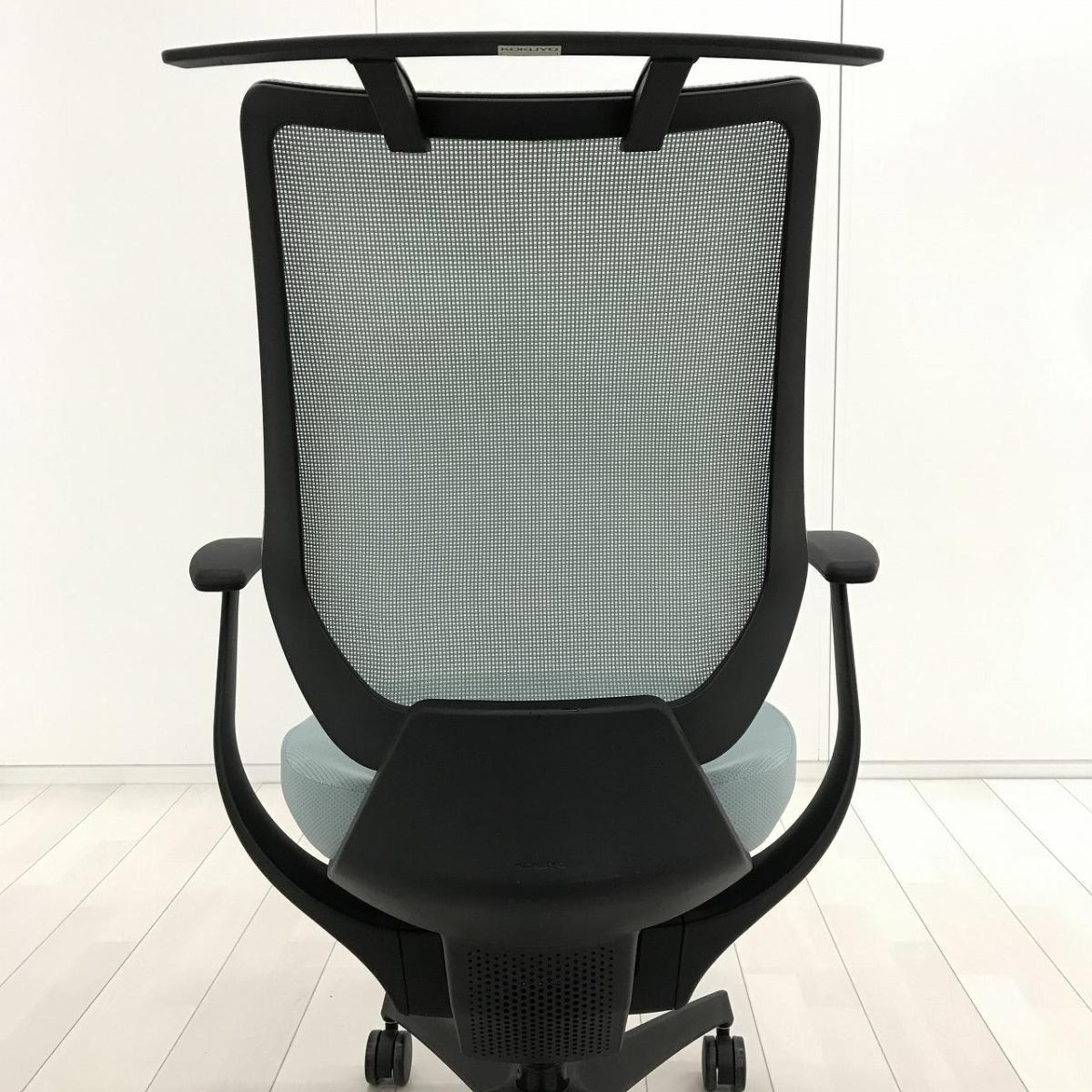【イスとひとつになれる新感覚! 360°揺れて体を自由に動かせる「グライディング・メカ」搭載!】■コクヨ(KOKUYO)製 イングチェア (ing) 肘付ハイバック ■ライトブルー ■背面メッシュタイプ ■固定肘 ■コートハンガー付き