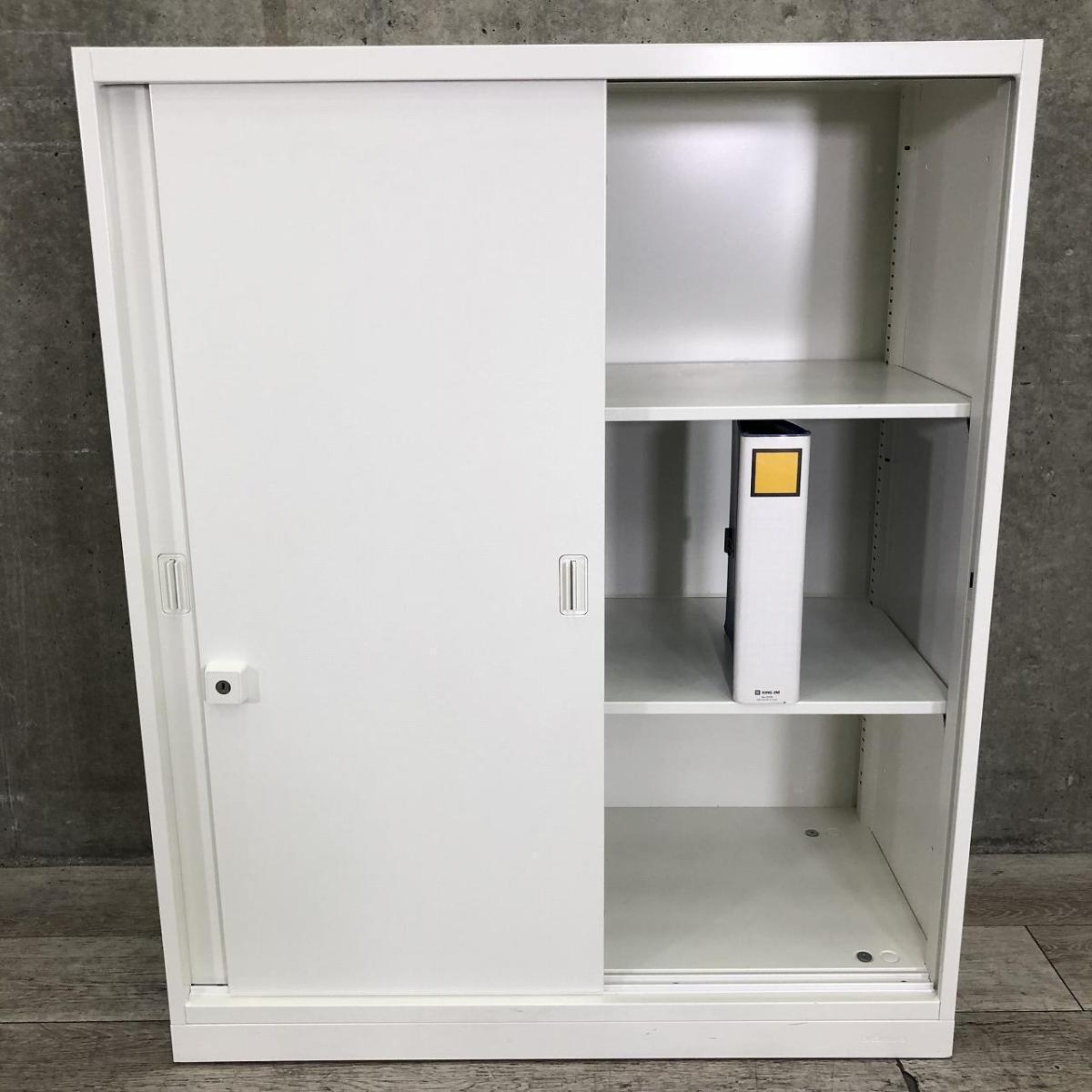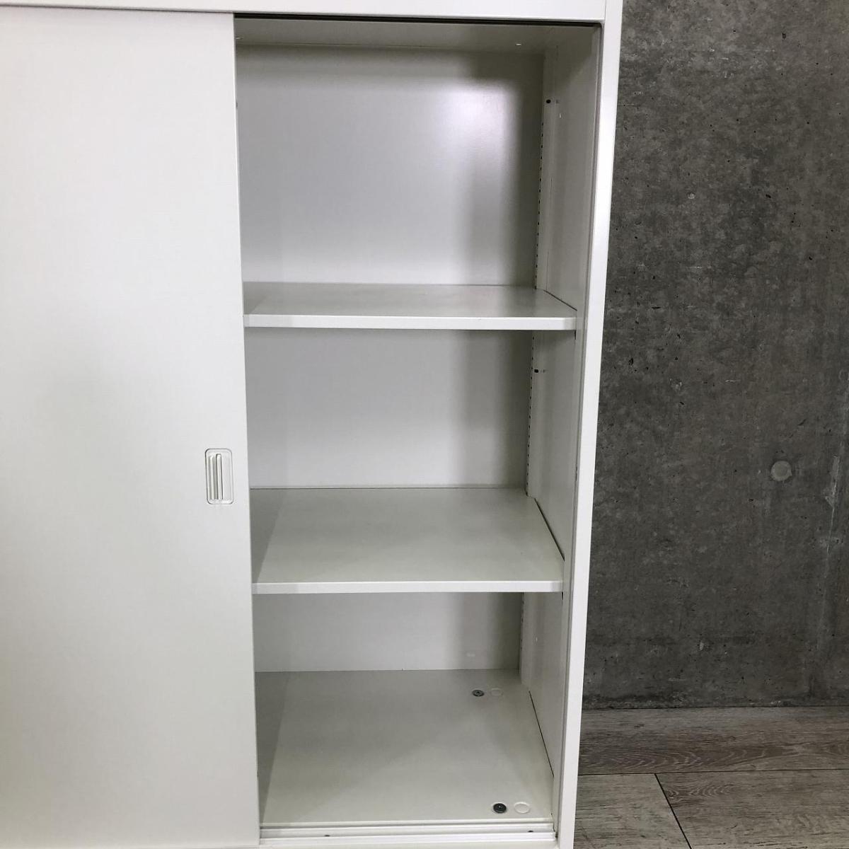 【開閉スペースがいらないので省スペースに最適!】 ■オカムラ(okamura)製 レクトラインシリーズ ローキャビネット 引き違い書庫 ■3枚引き戸タイプ W900×D450×H1120mm ■シリンダー錠 ■ホワイト【2602】弊社使用欄【A01060135】