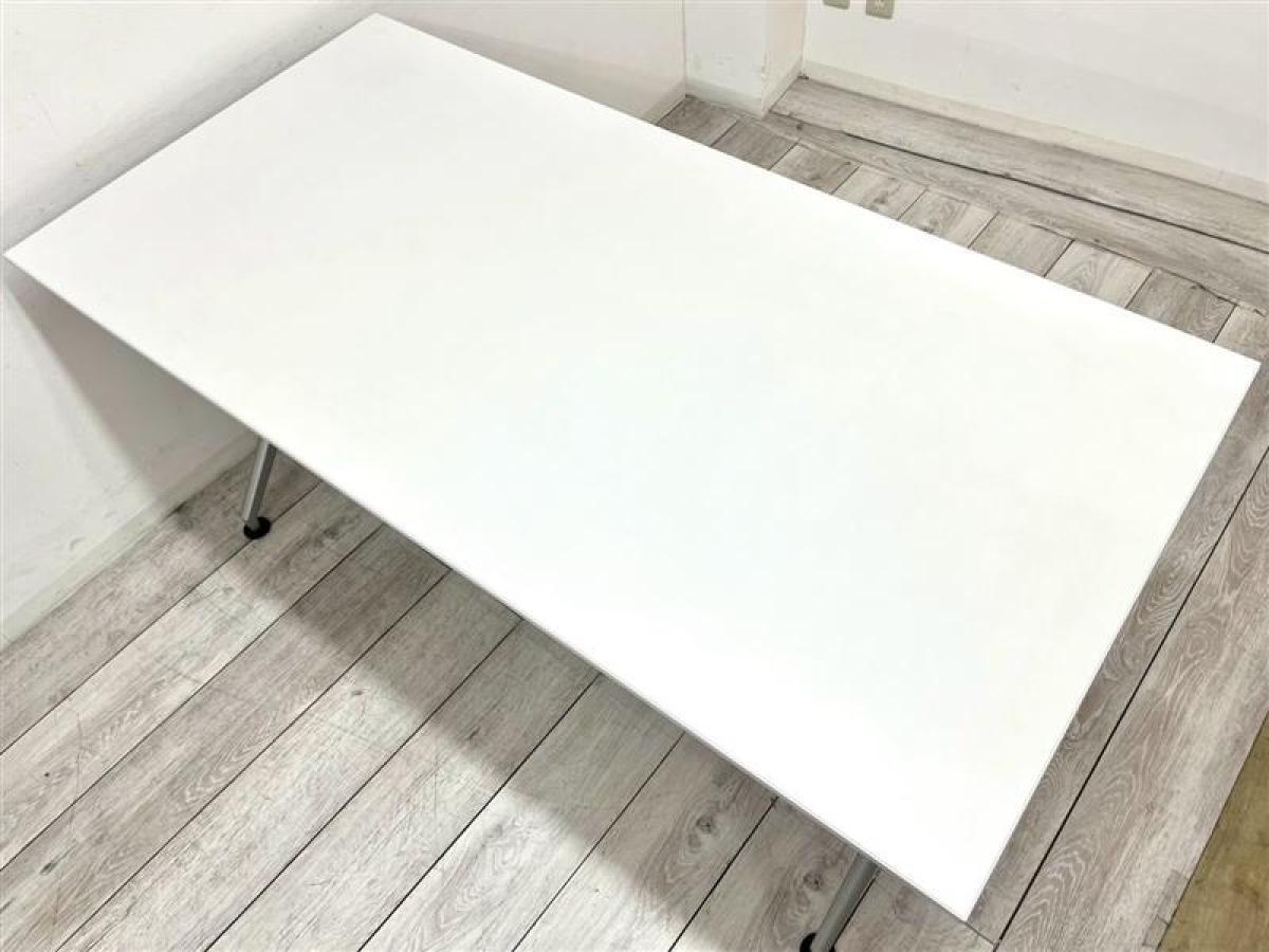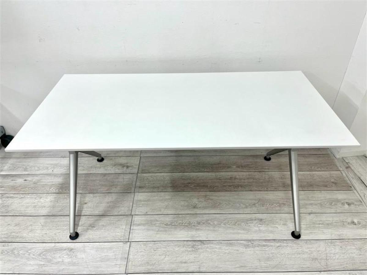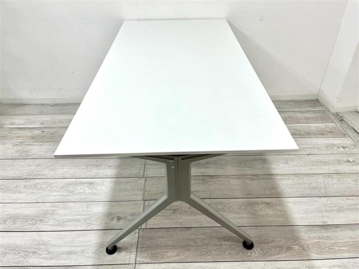清潔感のあるホワイト天板にシルバーの脚のシンプルなデザインのミーティングテーブル!