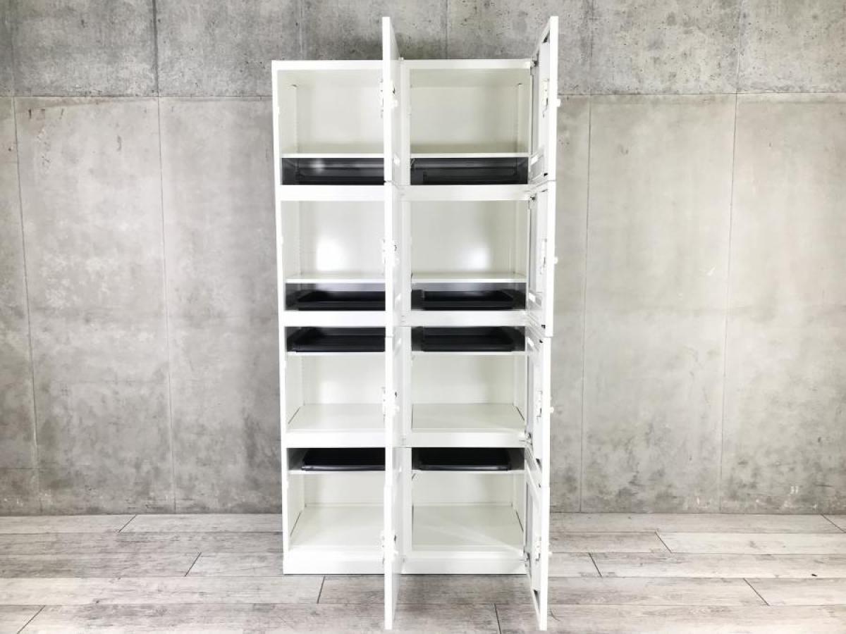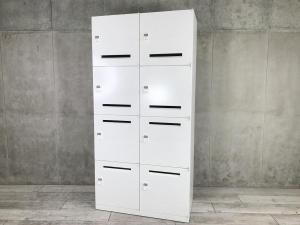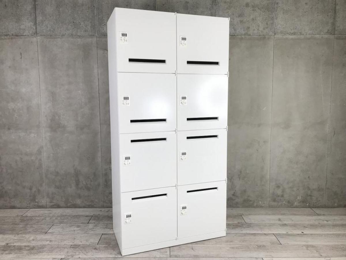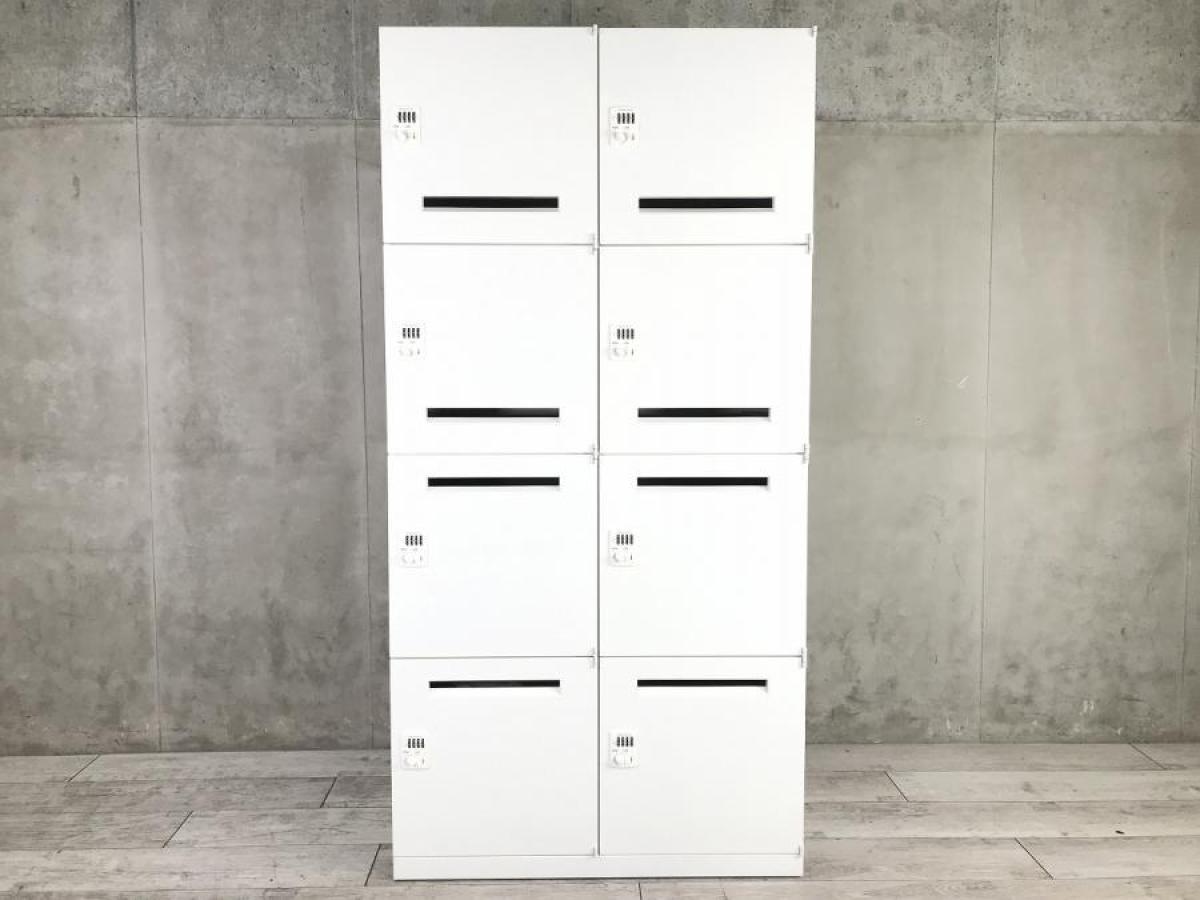 【省スペースに多人数分ご利用頂けます!】■オカムラ製 8人用パーソナルロッカー 2列4段収納 シリンダー錠 ホワイト トレイ無【メールロッカー】