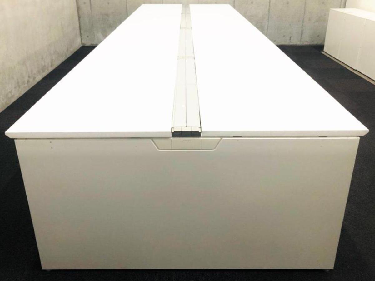 【見た目がおしゃれなフリーアドレスデスク】幅3600㎜ 奥行1400㎜ 高さ720㎜ オカムラ/プロユニットフリーウェイ/天板:ホワイト/脚:ホワイト 中古家具