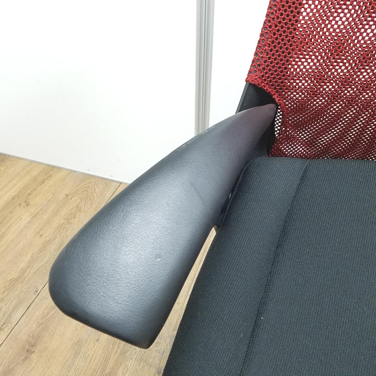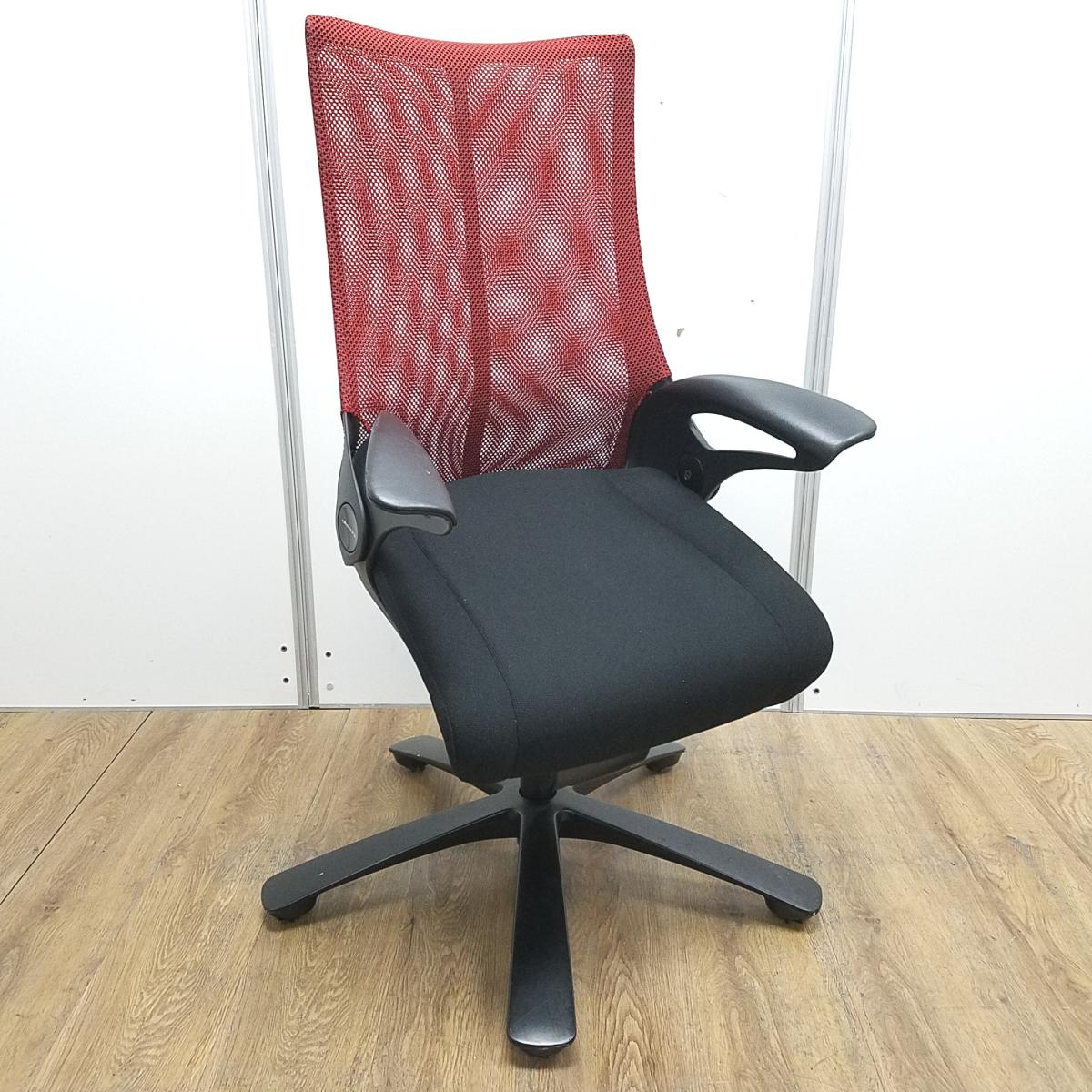 【包み込まれる座り心地ゆりかご!!ご自宅用にもおすすめ!】■オカムラ(okamura)製 レオパード(leopard)シリーズ 肘付ハイバック ■背面メッシュ:レッド ■座面クッション:ブラック