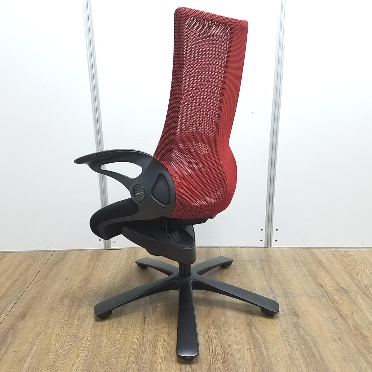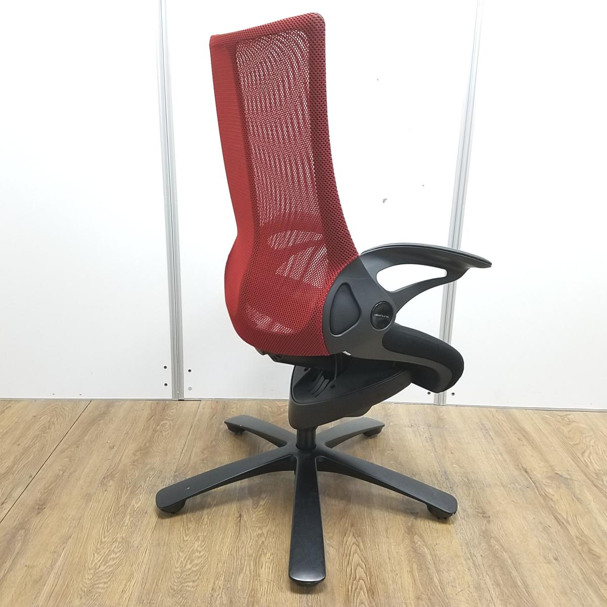 ★オカムラ製 レオパード(leopard) レッド ブラックフレーム 肘付き ハイバック 背面メッシュ 包み込まれる座り心地ゆりかご! 自宅用にもおすすめ! ロボットテクノロジーから生まれた次世代コンフォートシーティング! 肘付きハイバックチェア!!サーキュラーバリューCO2削減量の算出について