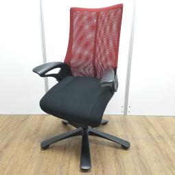 ロボットテクノロジーから生まれた快適性!包み込まれる座り心地ゆりかご!ご自宅用にもおすすめの高級チェア!】 ■オカムラ/レオパードチェア(leopard)/背面メッシュ:レッド/座面クッション:ブラック