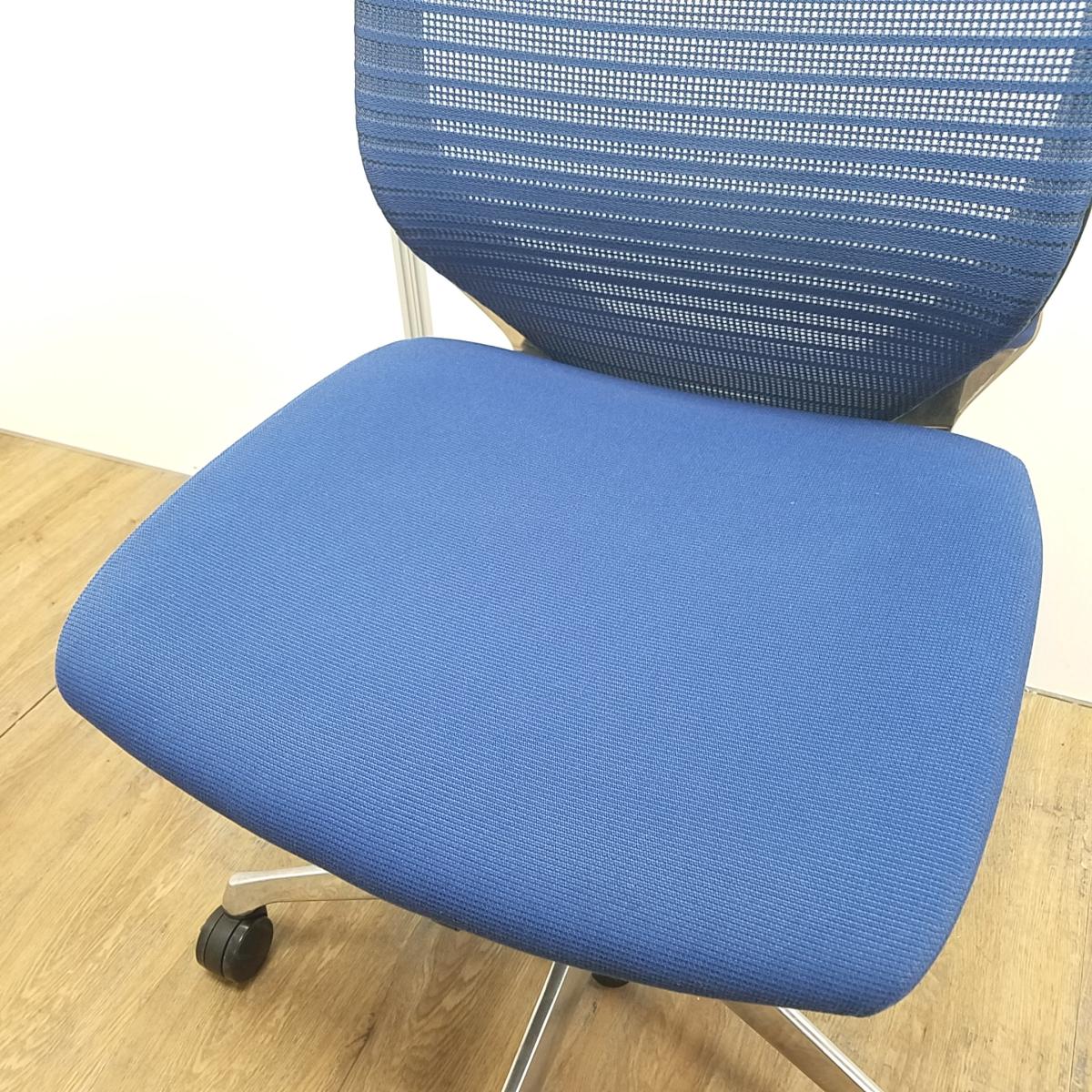 【2脚入荷】■オカムラ(okamura)製 バロンチェア(Baron) 肘無し ローバック 背メッシュブルー・座面メッシュネイビー【2512】弊社使用欄【A01037288】