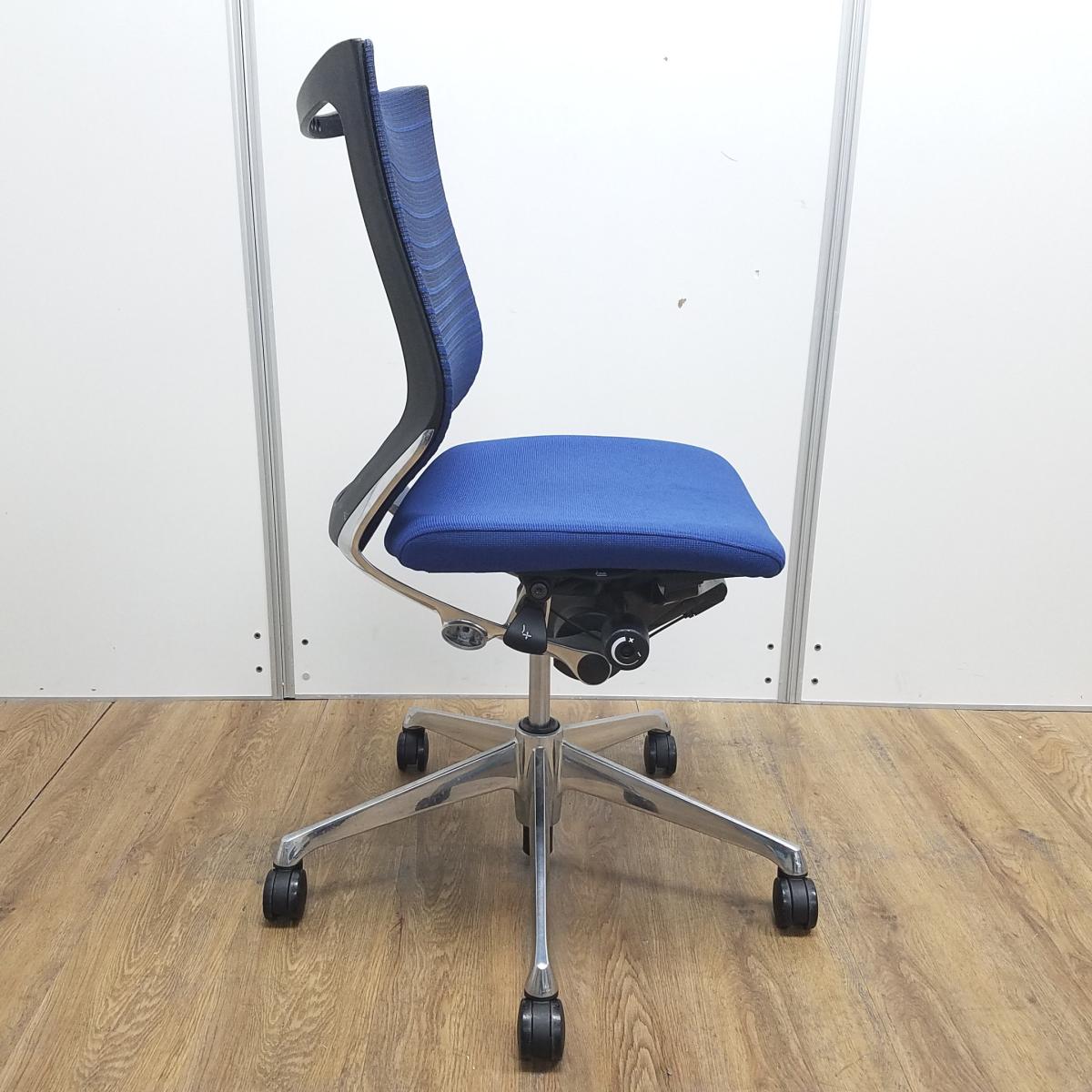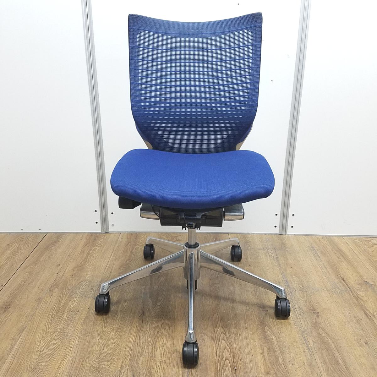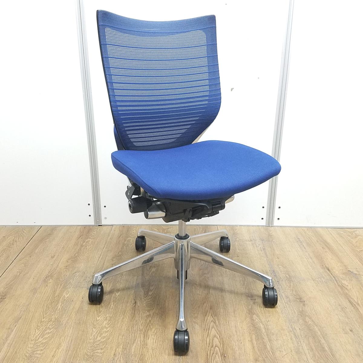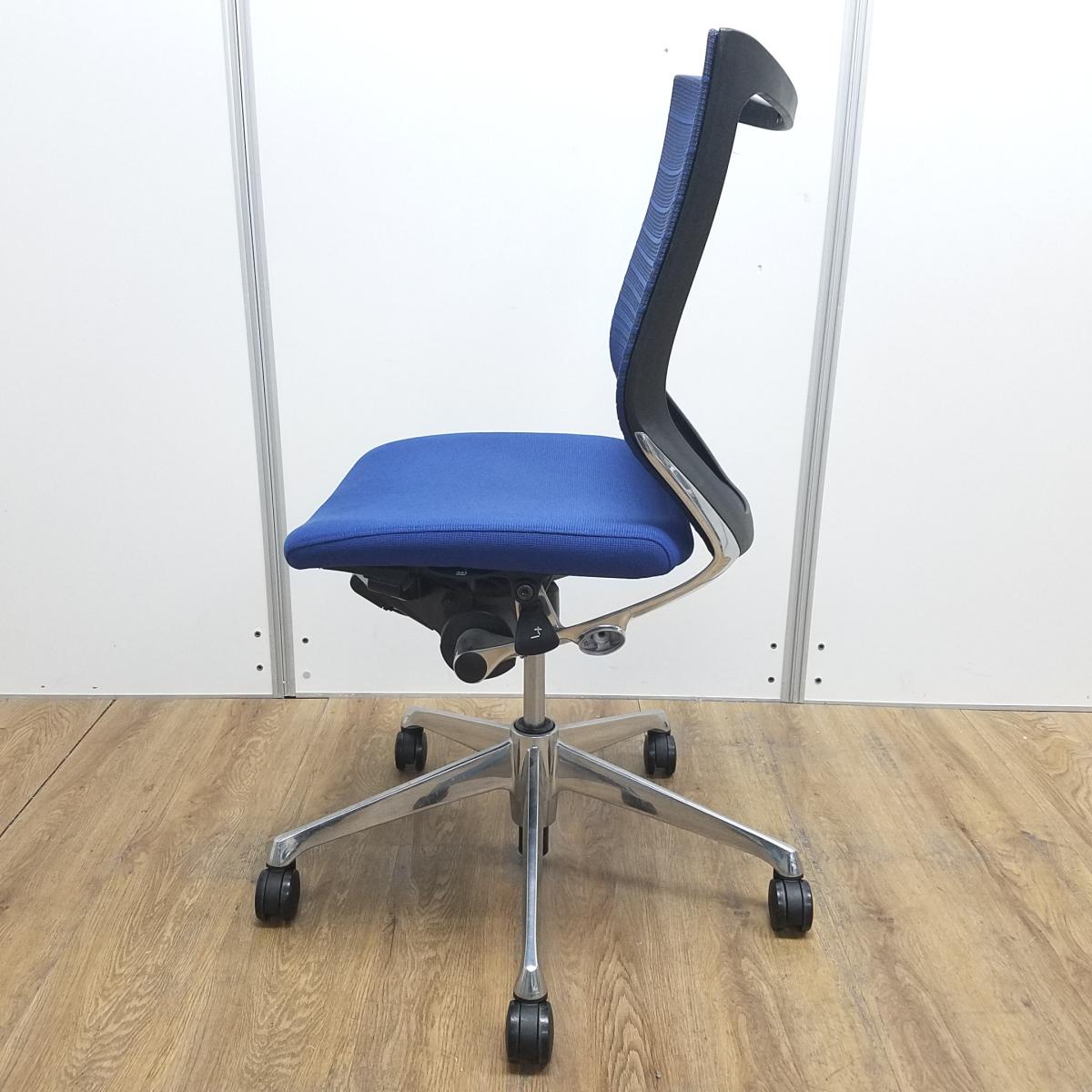 【長時間のデスクワークを快適にサポート!】■オカムラ(okamura)製 バロン(Baron)シリーズ 肘無ローバック ■ブルー