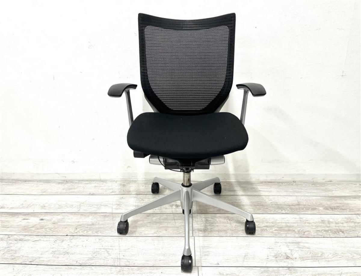 ■オカムラ(okamura)製 ■バロン(Baron)チェア ■肘付ローバック ■背面メッシュ ■ブラック ■可動肘 【弊社使用欄:A01059700 K】【SN】