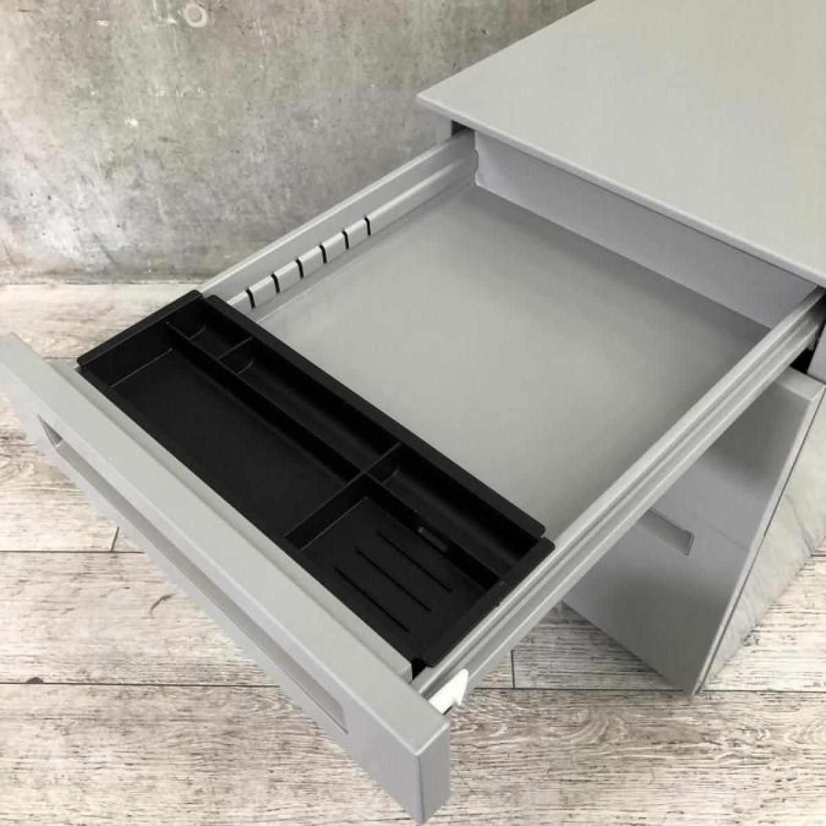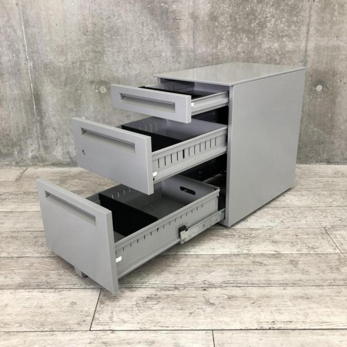 デスク下に置いて収納アップ!使い勝手抜群のキャスター付き3段ワゴン! ■内田洋行/STシリーズ/ミドルグレー 3段ワゴン デスクインワゴン シリンダー錠- 立川・八王子店