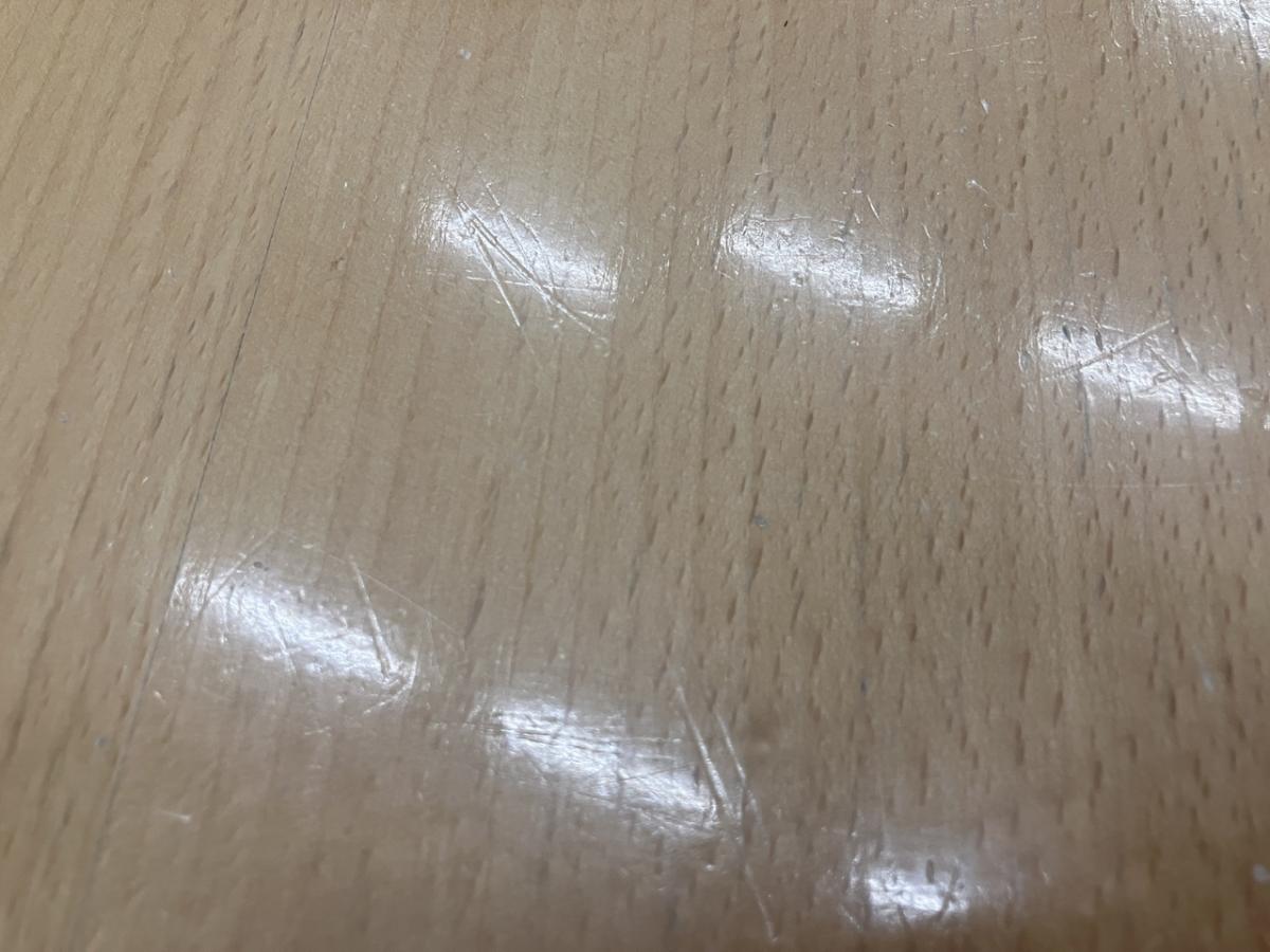 - あり黄ばみ・変色が広い範囲にうっすらある、または濃い黄ばみ・変色が一部ある。(例、天板、幕板、棚板、サイド部分、脚部等にある。)