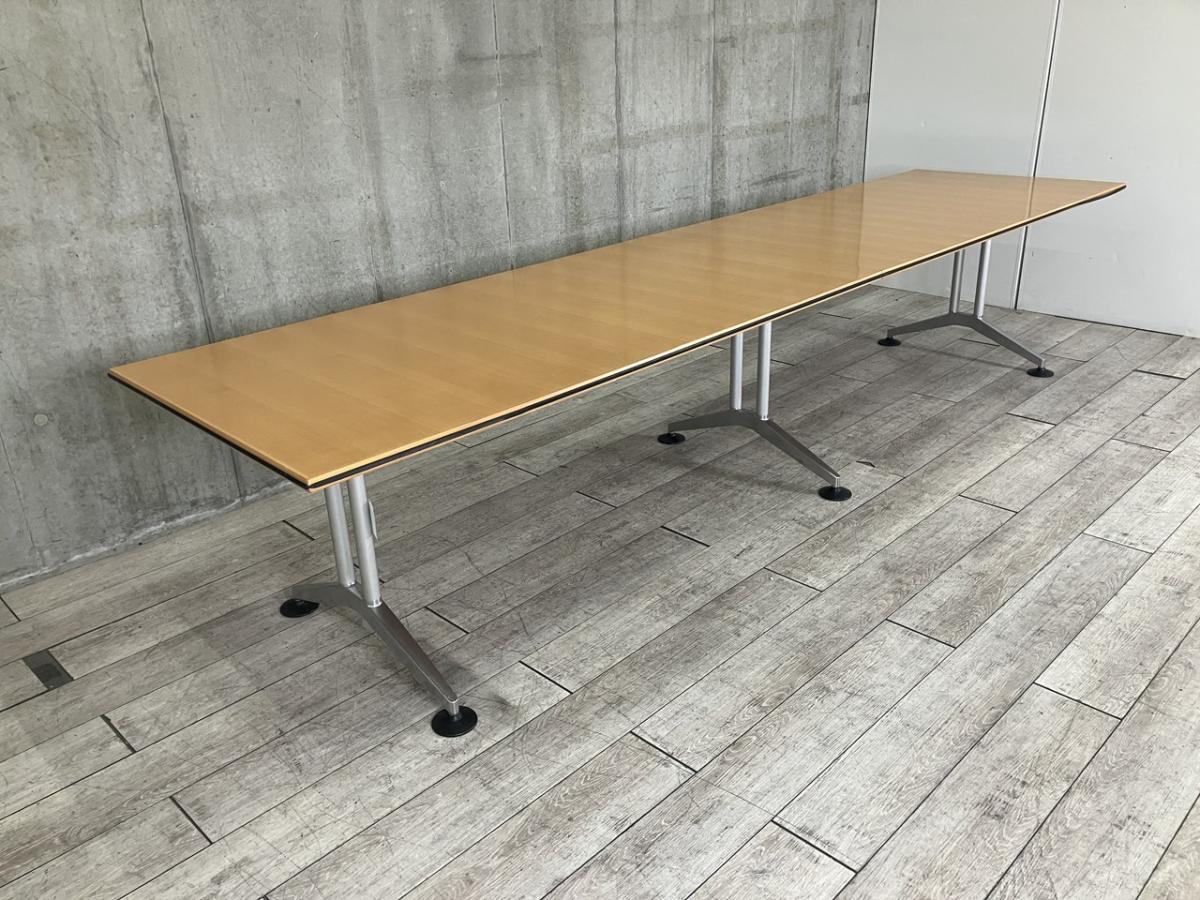 【4/14(火)入荷予定の商品となります!】【幅3600㎜・洗練された上質なデザインの大型テーブル!】■会議用テーブル ミーテイングテーブル W3600×D900×H720㎜ ■木目調ナチュラル天板 ※2枚天板のため搬入もしやすい!- つくば店