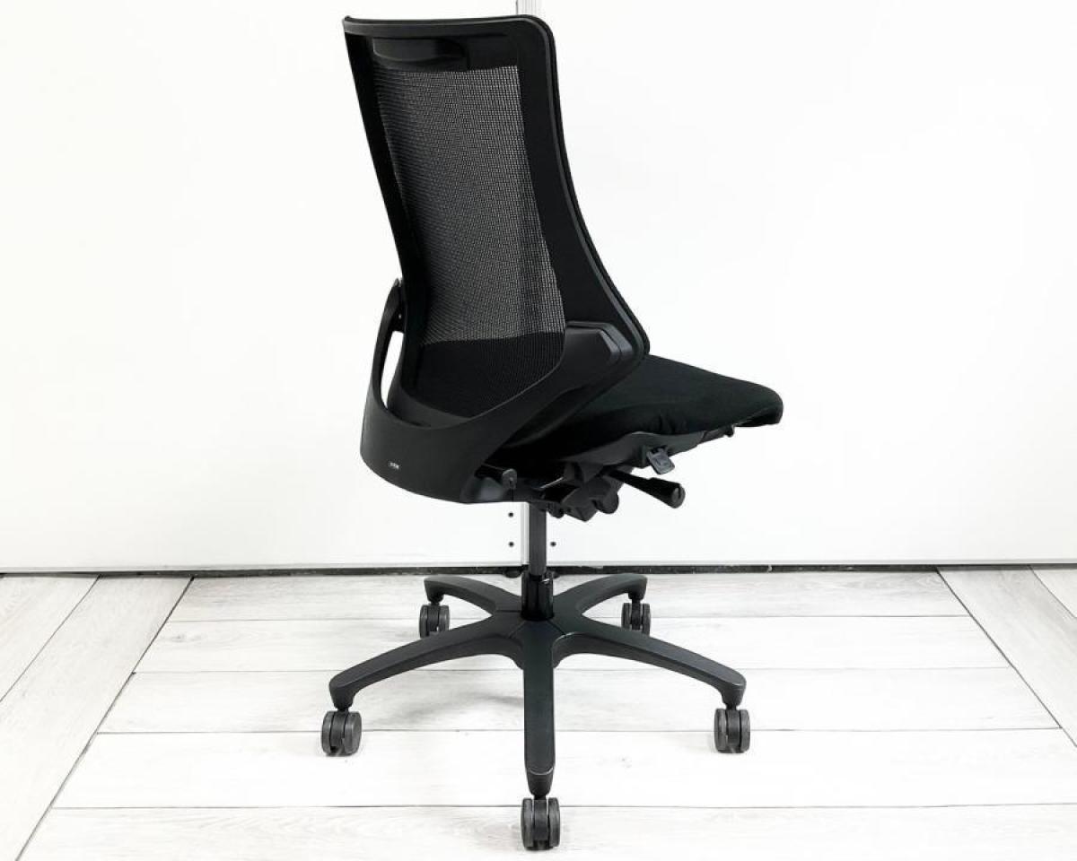 【在庫入替お値下げ品!】【肩から腕を開放する美しいフォルム!】■イトーキ製 エフチェア ブラック 背面メッシュ ■姿勢の変化にフレキシブルに対応!【ITOKI fチェア】