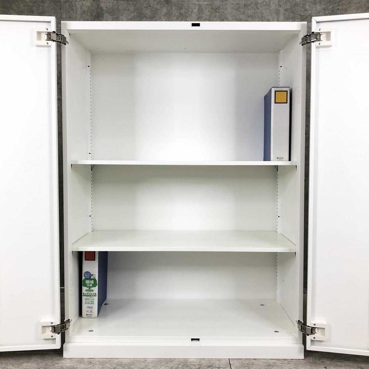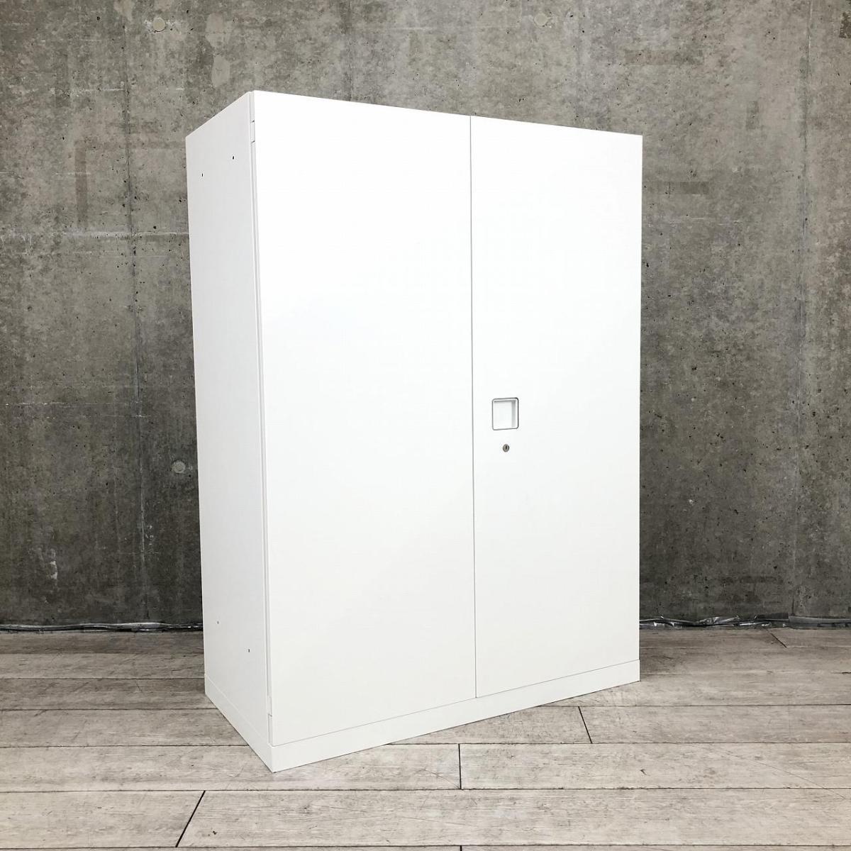 オカムラ レクトライン 両開き書庫 シリンダー錠 鍵付き ホワイト 高さがH950とコンパクト目なサイズ感 ※実物は取っ手部分に日焼けがあります