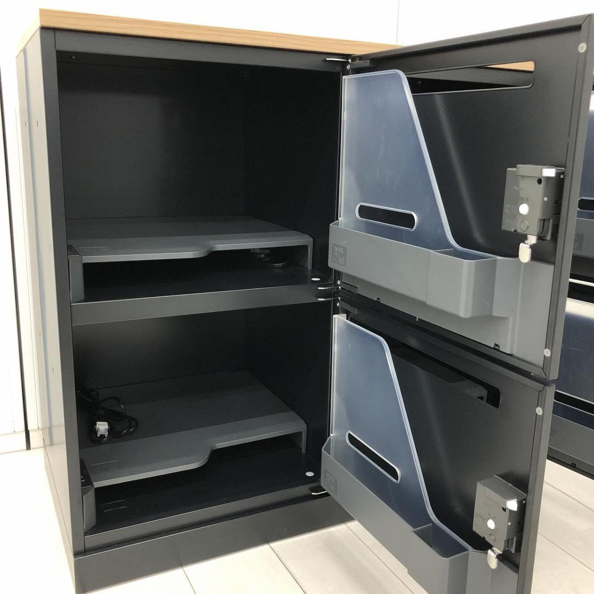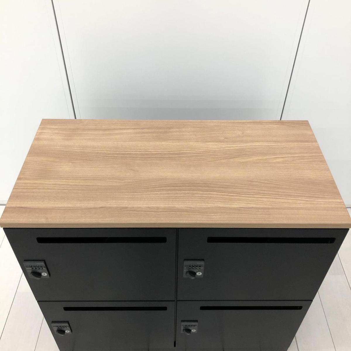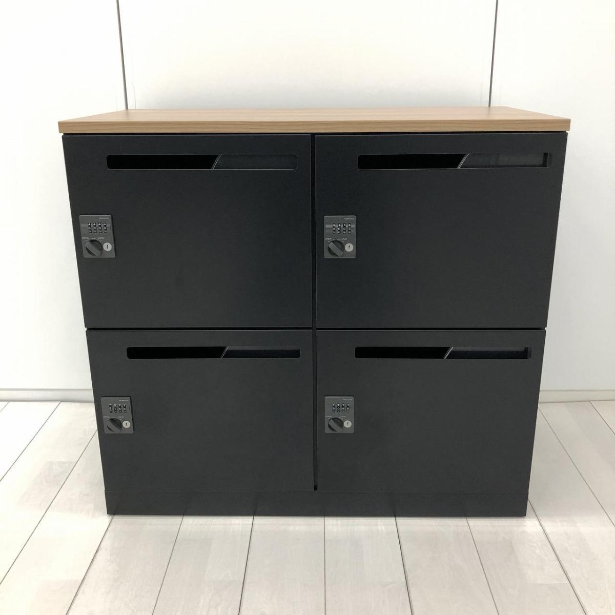 入替セール品につきお値下げ!【カフェ調オフィスへリニューアルご検討の方にお勧め!】■コクヨ イノンシリーズ 4人用パーソナルロッカー H760mm 投函口付 ダイヤル錠 ブラック 木目天板付【KOKUYO iNON】【メールロッカー】