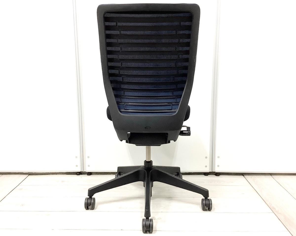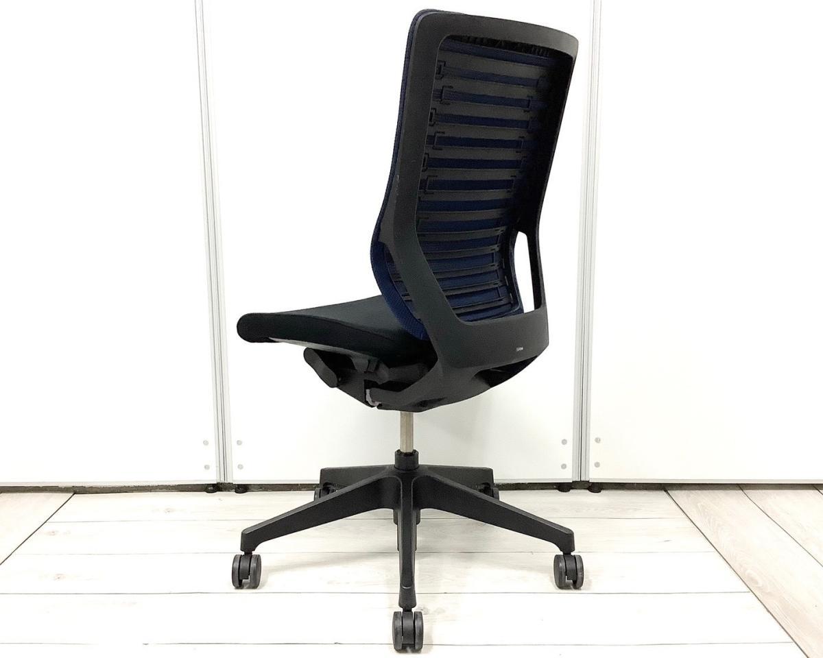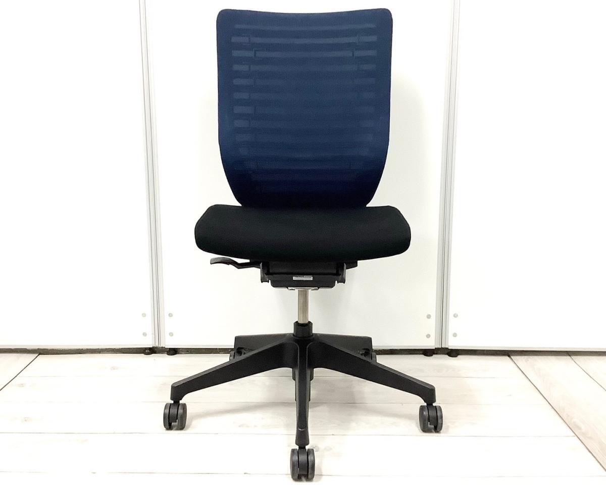 【操作レスな体重感応メカを搭載!!体格にマッチするエピオスチェア!】■イトーキ(ITOKI)製 エピオスチェア 肘無し ハイバック ■背面メッシュ:ネイビーブルー 座面クロス:ブラック