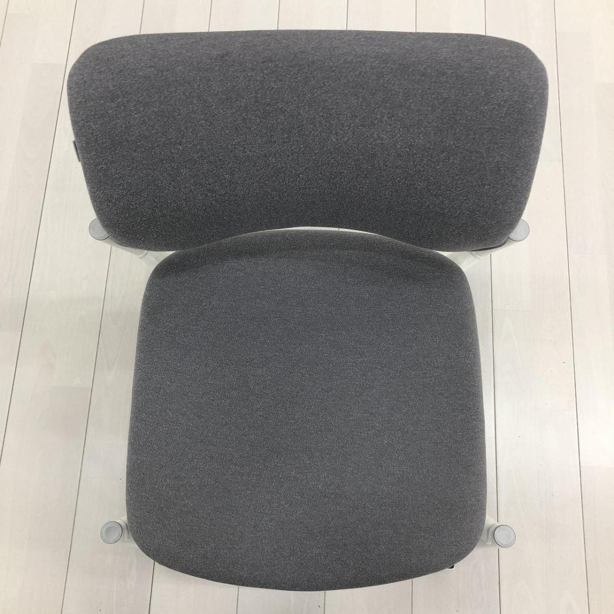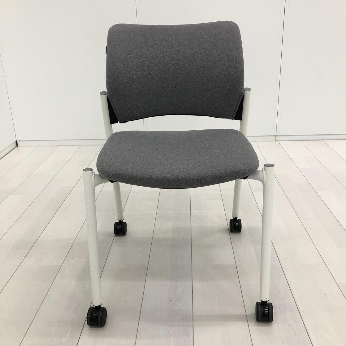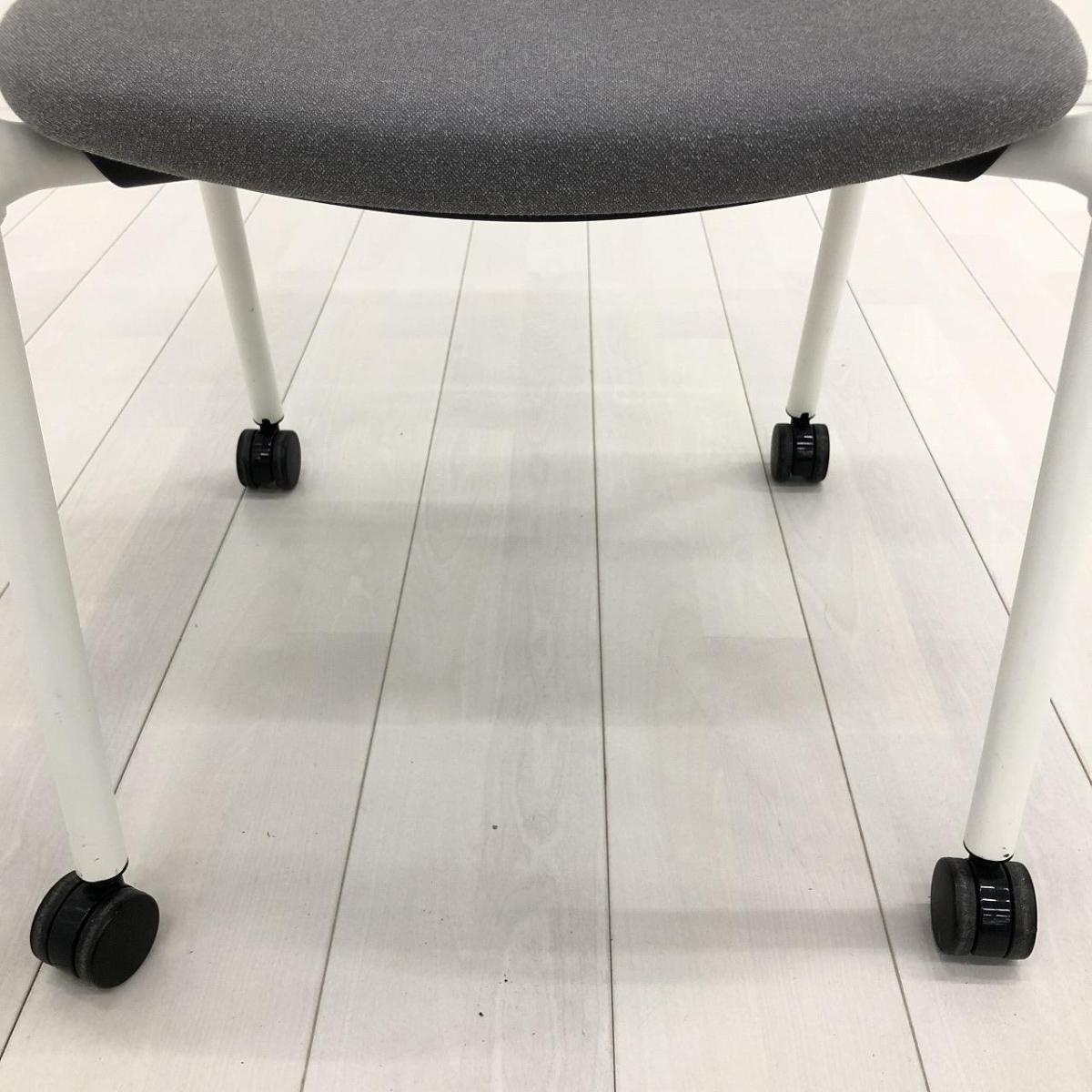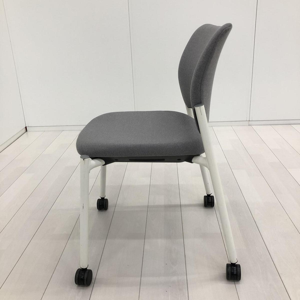【使わない時は重ねて収納可能!セミナーや打ち合わせに!】■オカムラ(okamura)製 8147シリーズ スタッキングチェア ミーティングチェア クッションタイプ ■キャスター付 ■グレー ホワイト脚- 茨城南店
