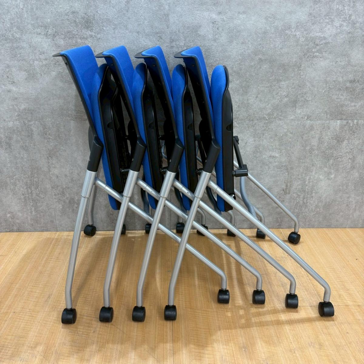 【4脚セット】 イトーキ製のネスティングチェア(ミーティングチェア)【マノスシリーズ】