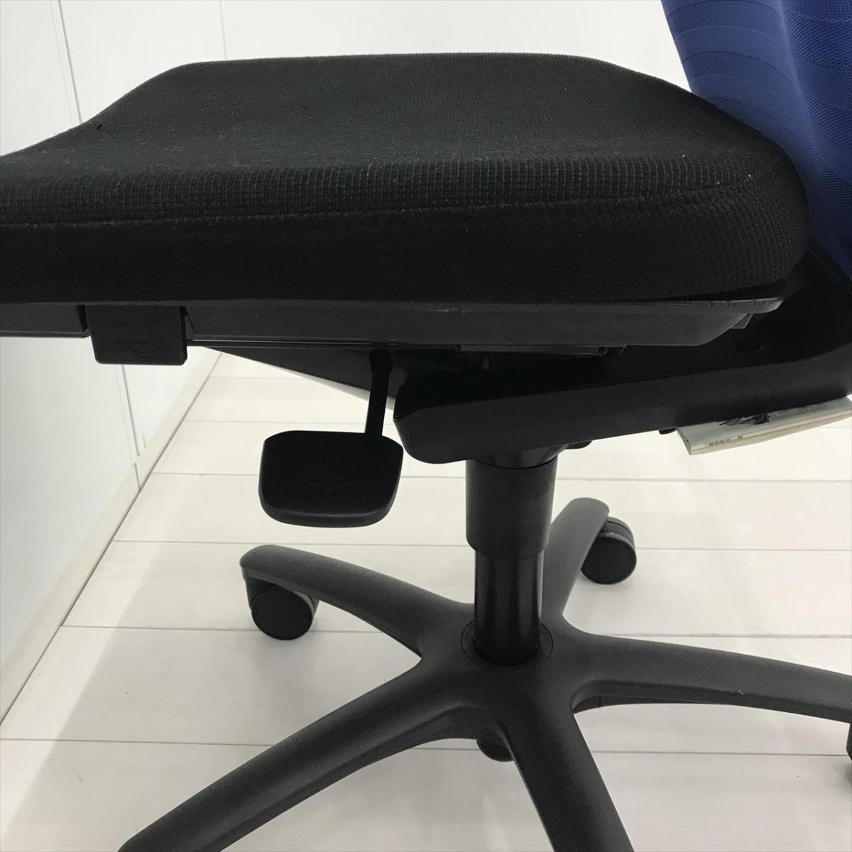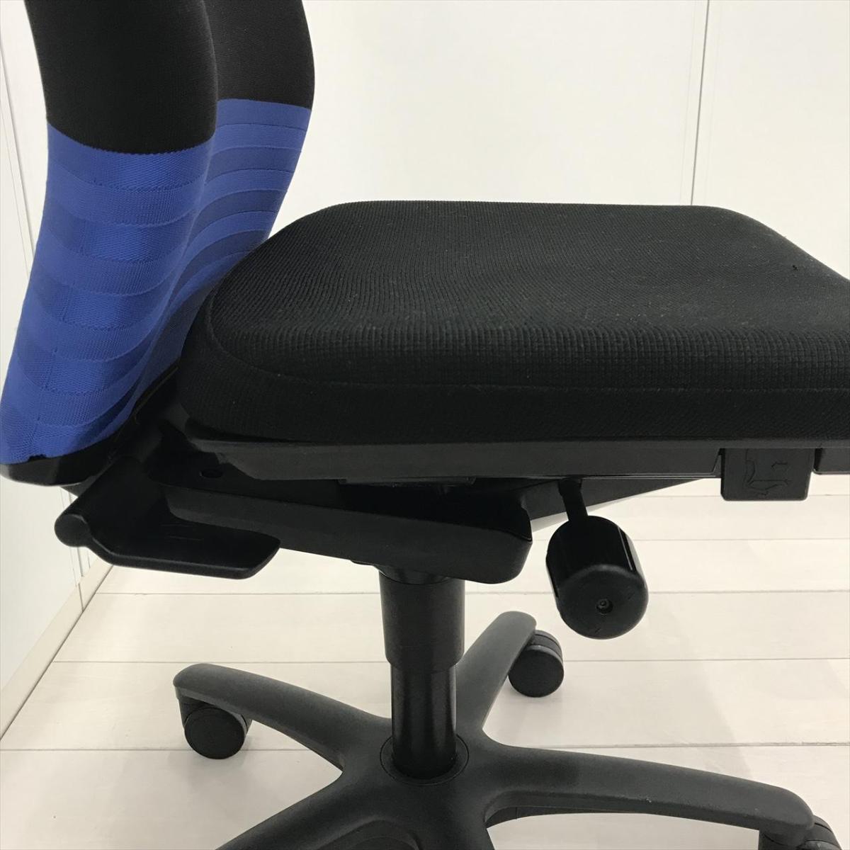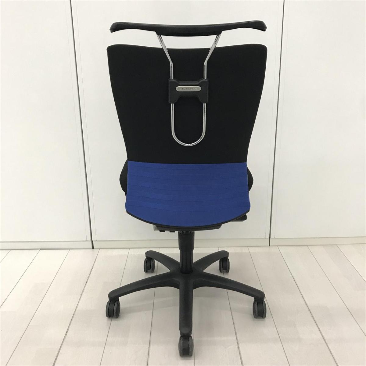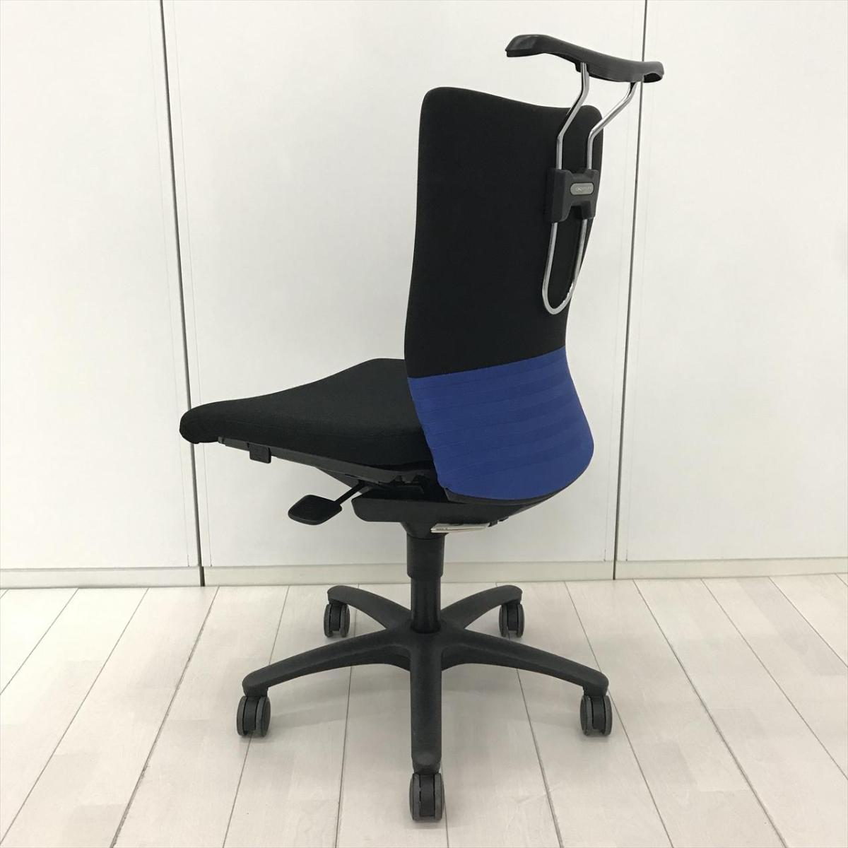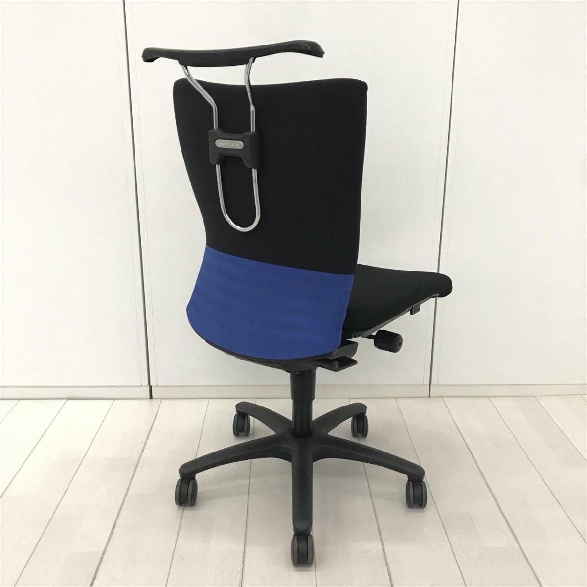 ワンポイントの青色がおしゃれ!固めの背面が腰にもフィットする人気定番チェアが入荷! ■オカムラ/フィーゴ/シームレスブルー コートハンガー付