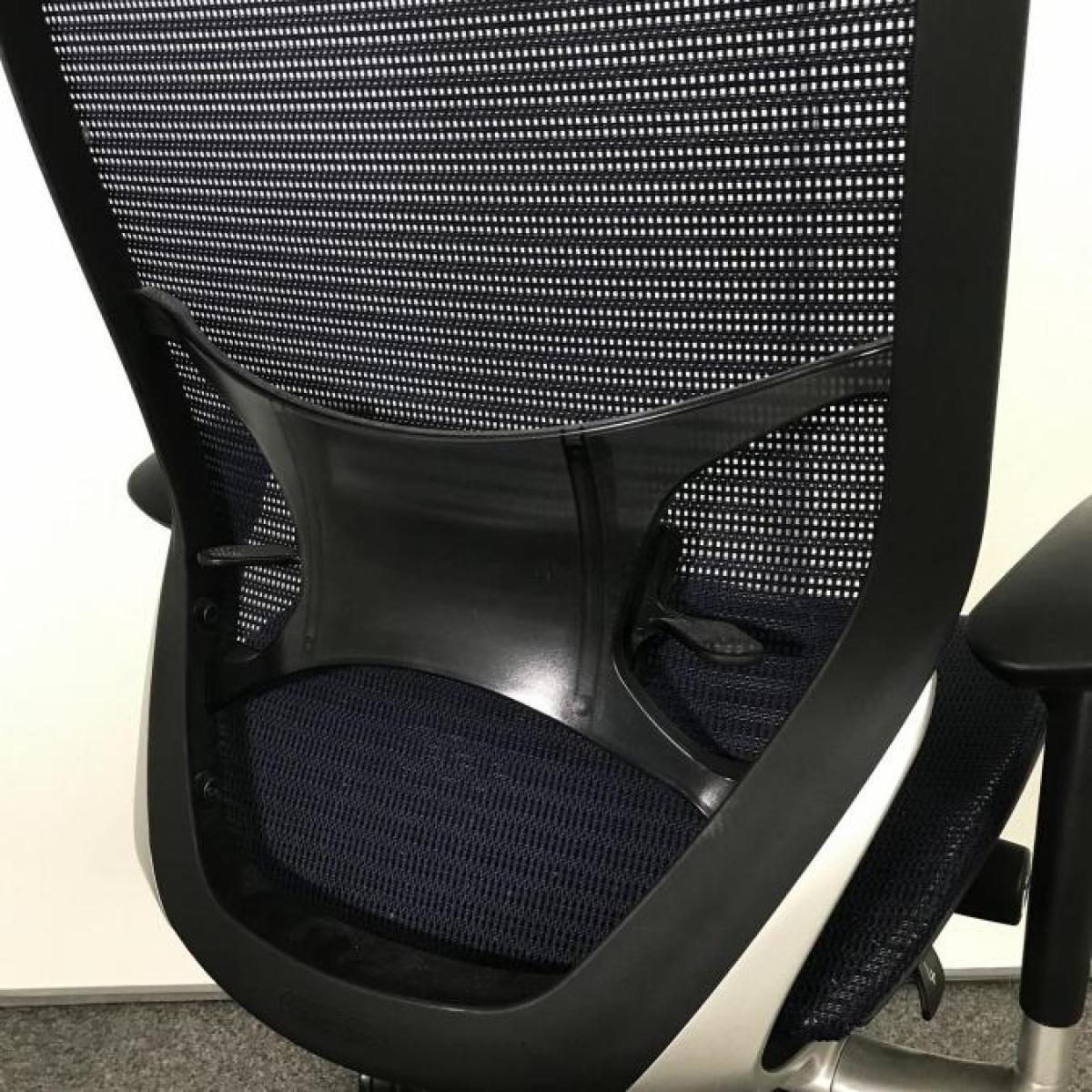 【ベストなポジションが得られる先進設計!】■オカムラ(okamura)製 バロン(Baron)チェア ハイバック肘付き ■背・座面メッシュ ■可動肘・ランバーサポート付き ■ダークブルー×ブラックシェル