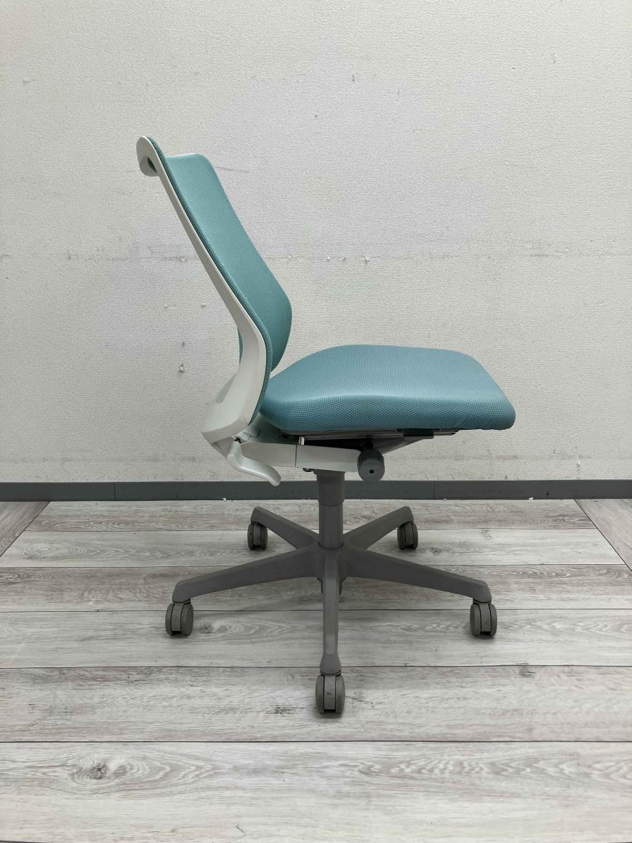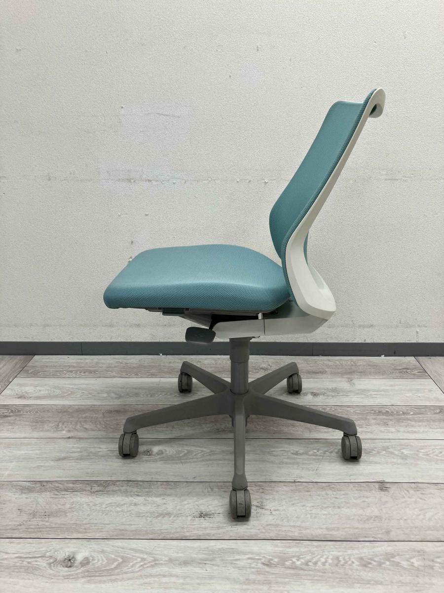 【腰まわりをしっかりホールド!長時間作業も快適フィット!】■オカムラ(okamura)製 フルーエントチェア(Fluent) ローバック 肘無し ■背面メッシュ ■セージブルー×ホワイトシェル〈岐阜・愛知・三重・静岡・福井〉- 浜松サテライト