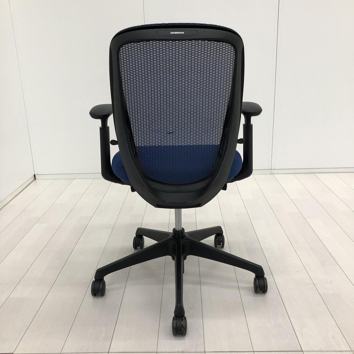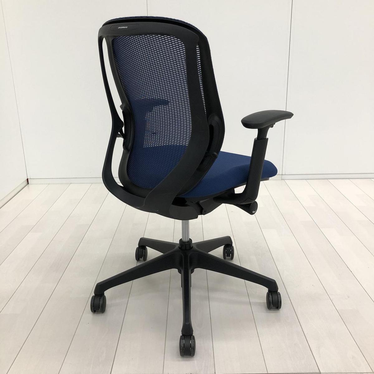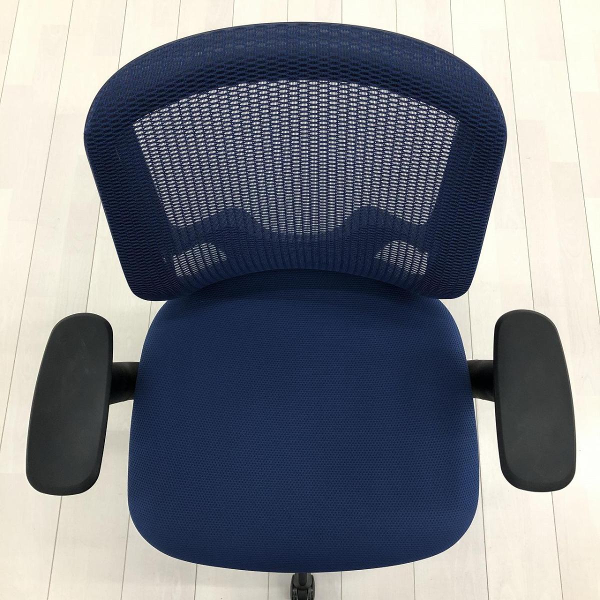 【前傾チルト機能付!大人気メッシュチェア!】■オカムラ(okamura)製 シルフィー(Sylphy) 肘付 ハイバック ■固定肘 ■ブルー ×ブラックシェル【2603】弊社使用欄【A01069136】
