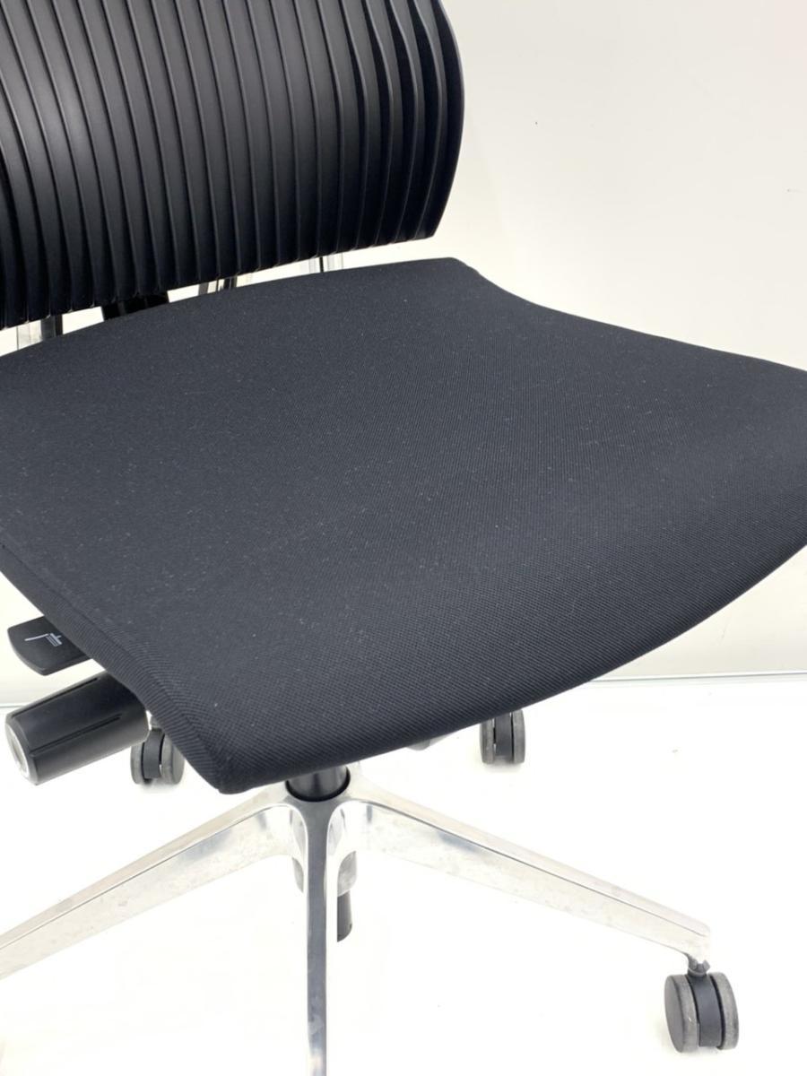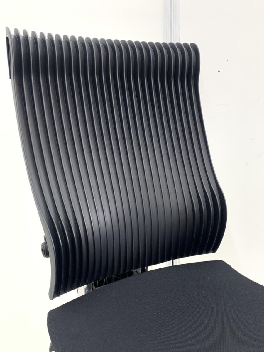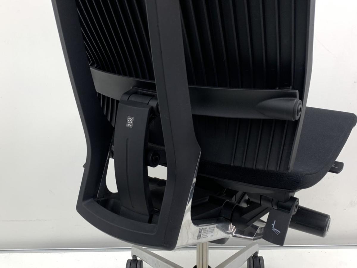見た目は少し硬そうに見えるエラストマー素材ですが、座ってみると程よいしなり具合のやわらかな座り心地で、背中が痛くなるようなことはまるでありません。面ではなく線で支えることで、背面の通気性の良さは抜群です。