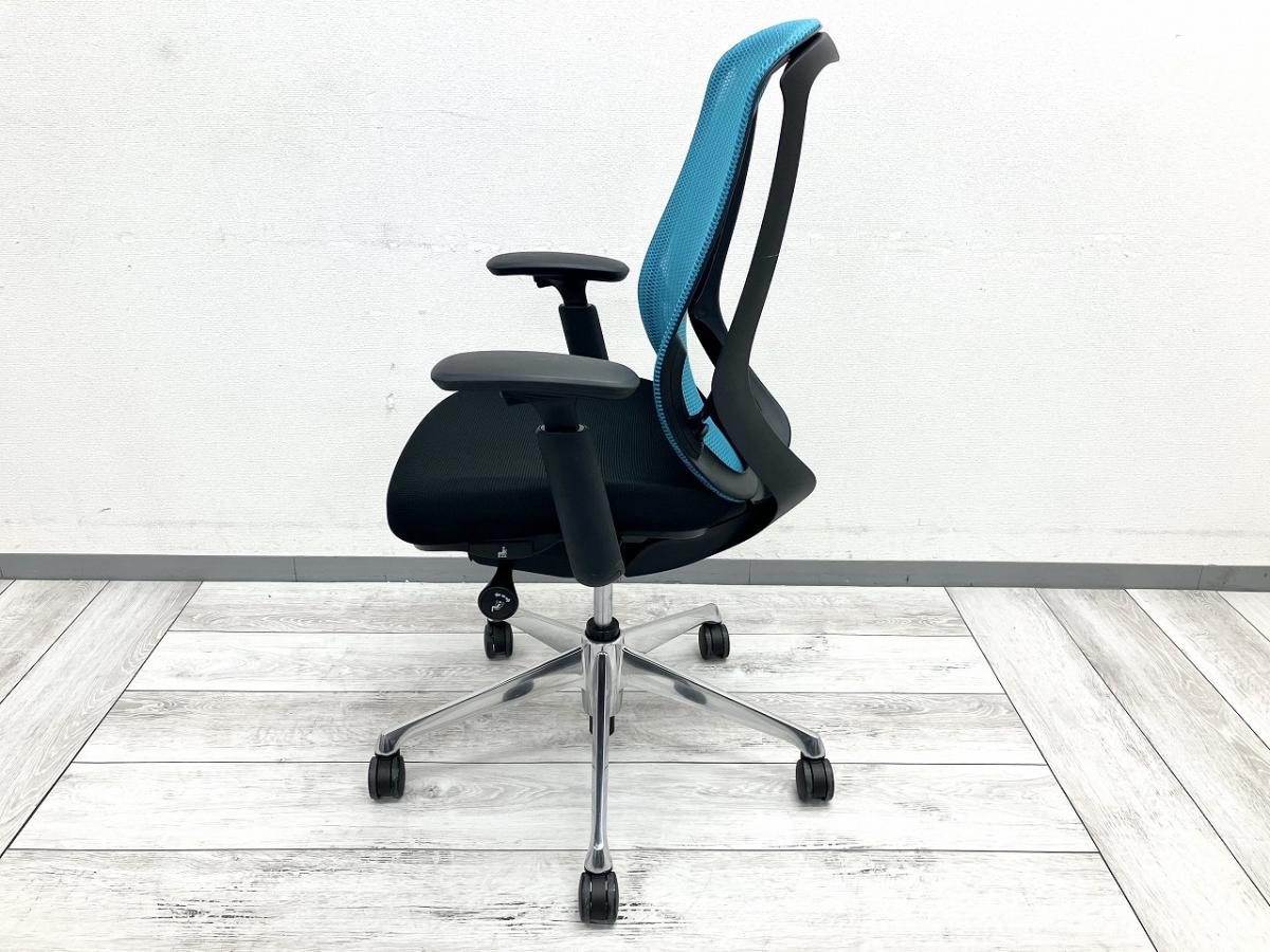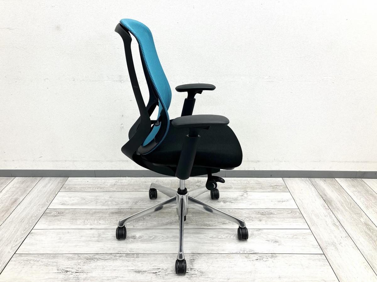 三次元曲面が身体にフィット・前傾チルト機能付き!大人気メッシュチェア! ■オカムラ/シルフィーメッシュ/ミディアムブルー 固定肘付