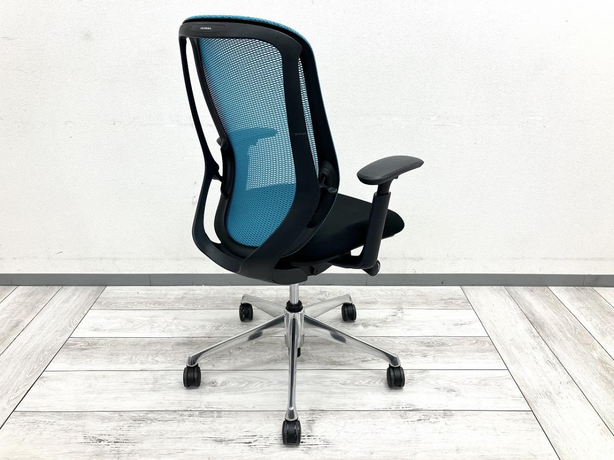 【オカムラ製品で最も人気を集める高機能メッシュチェア!】■オカムラ(okamura)製 シルフィー(Sylphy)チェア 肘付ハイバック ■可動肘 背面メッシュ ■ブルーグリーン×ブラックシェル【2603】弊社使用欄【A01064288】