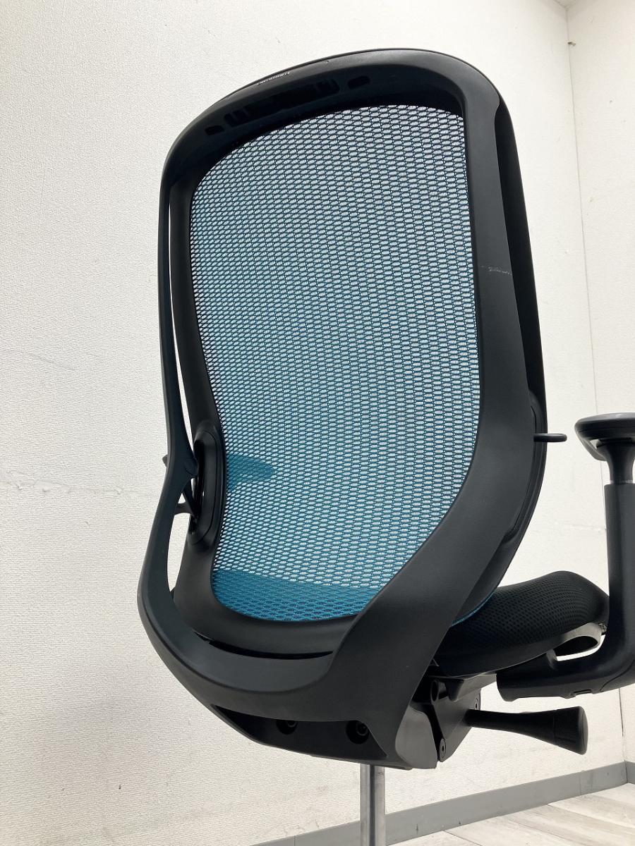 【在庫入れ替え】【訳あり品】ロッキング不良により固定不可となります。【三次元曲面が快適にフィットして背のカーブを変えられる新感覚のオフィスシーティング!】■オカムラ(okamura)製 シルフィ(Sylphy)チェア 肘付き ハイバック 背面メッシュ ■可動肘 ■インディゴブルー×ブラックシェル