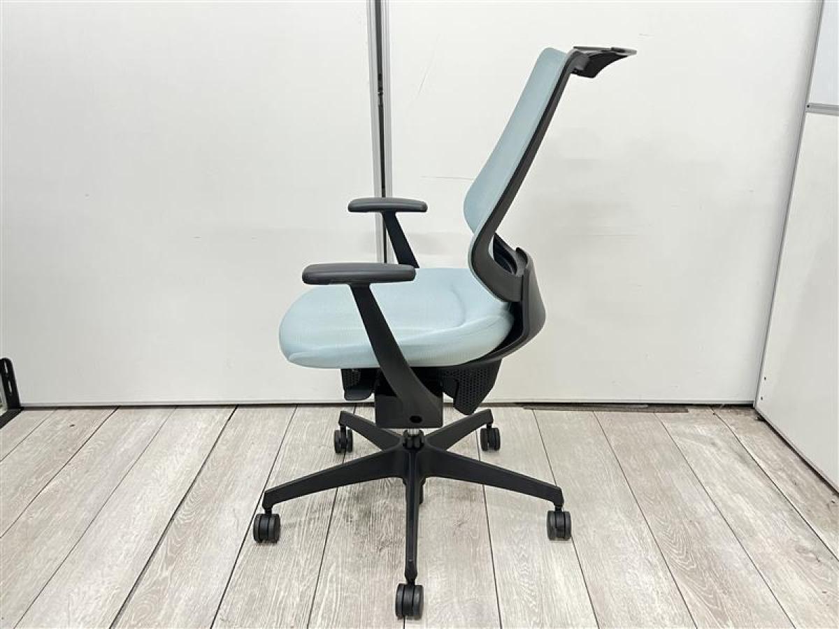 【メッシュ生地に一部破れがあるためお値下げ!】イスとひとつになれる新感覚! 360°揺れて体を自由に動かせる「グライディング・メカ」搭載!/オススメ(おすすめ) /人気商品■肘付ハイバック ■ライトブルー ■背面メッシュタイプ ■固定肘 ■コートハンガー付き/コクヨ(KOKUYO)製 イングチェア (ing)- 品川・三田店