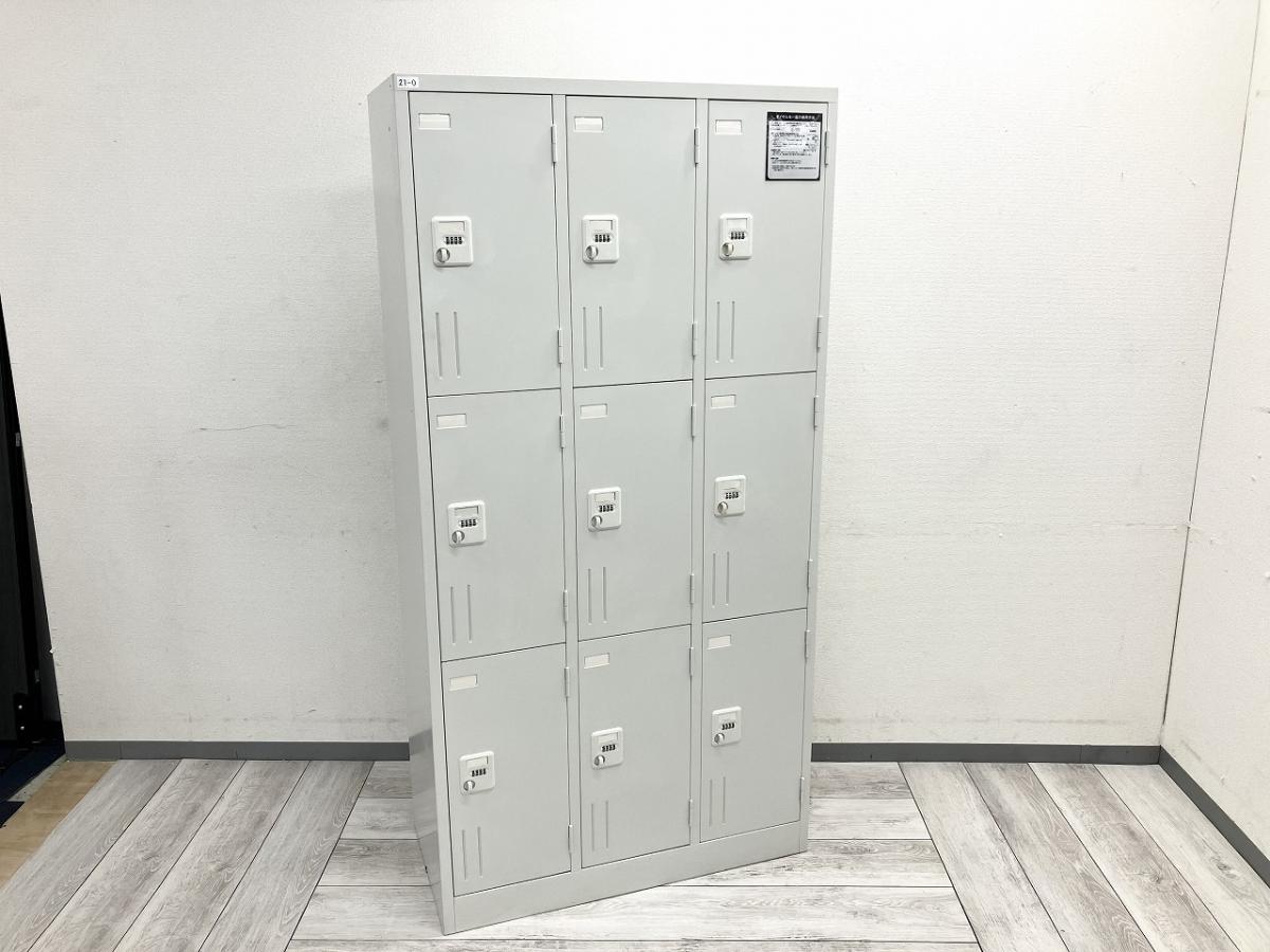 国内メーカー、くろがね工作所製の9人用ロッカーです。