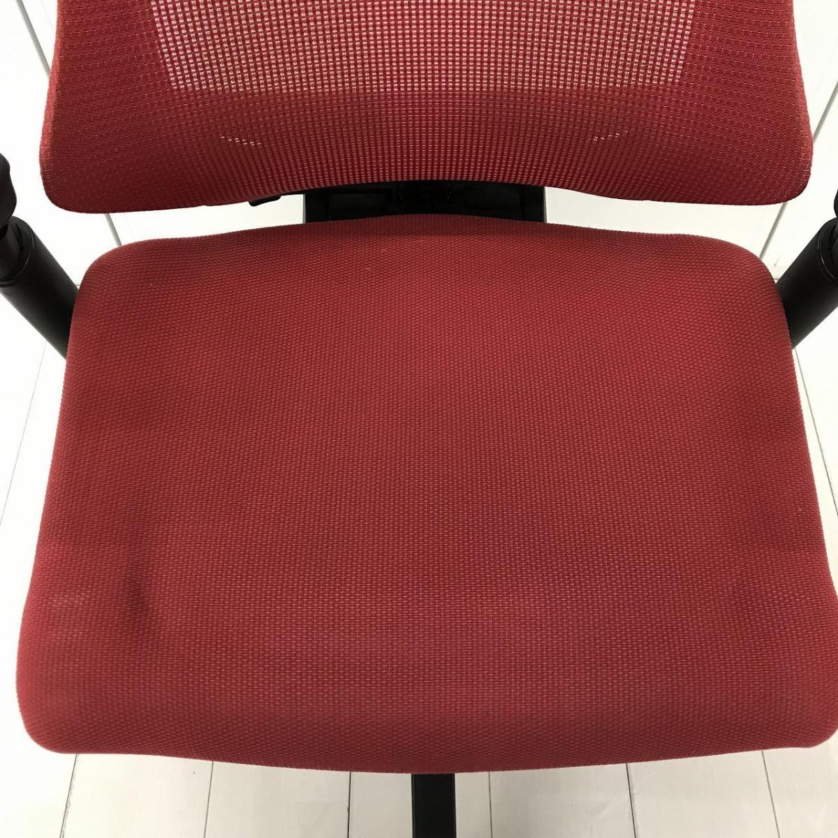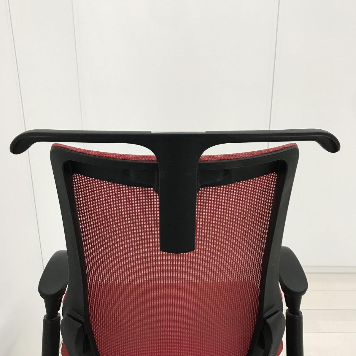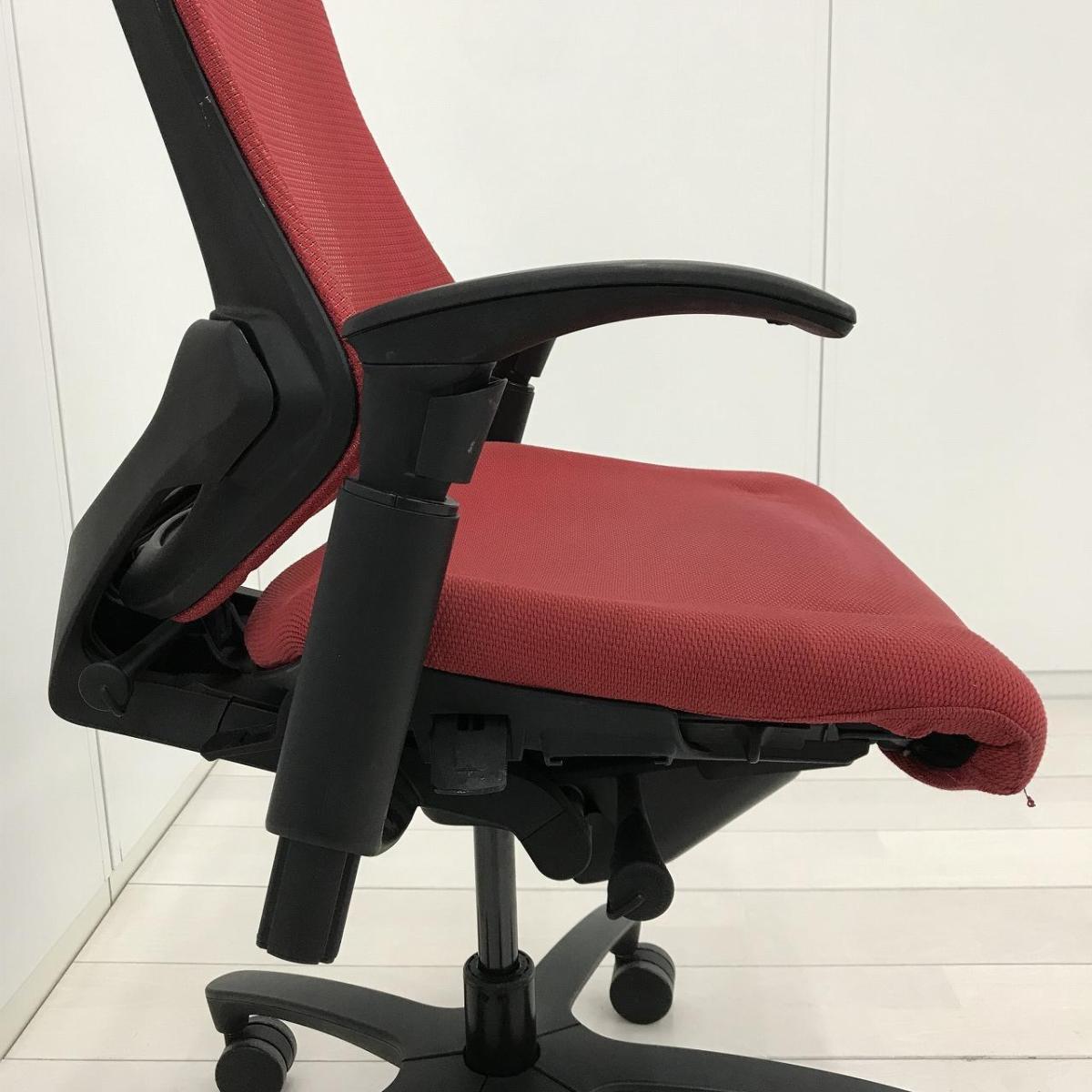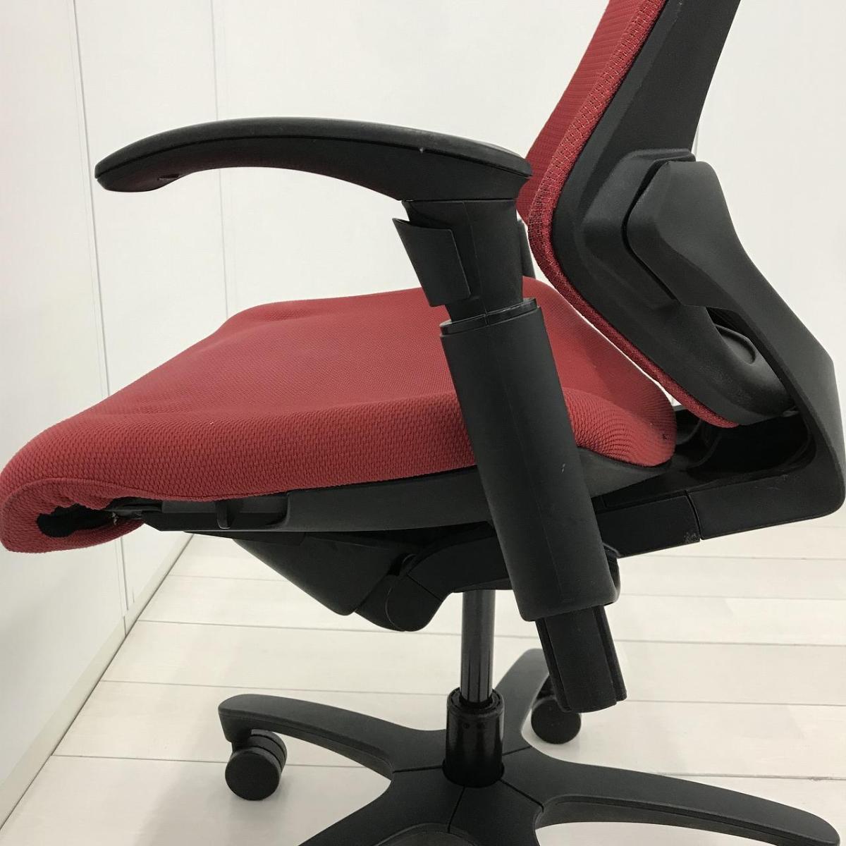 イトーキ エフチェア ハイバック(プレーンメッシュ) ラズベリーレッド×ブラック アジャスタブル肘- 名古屋千種店