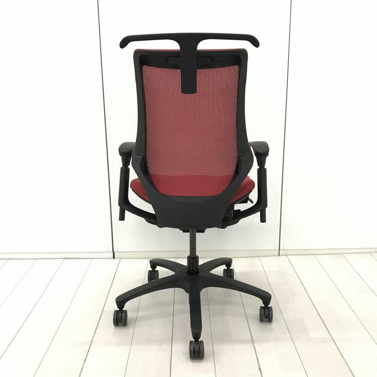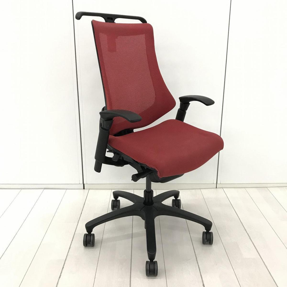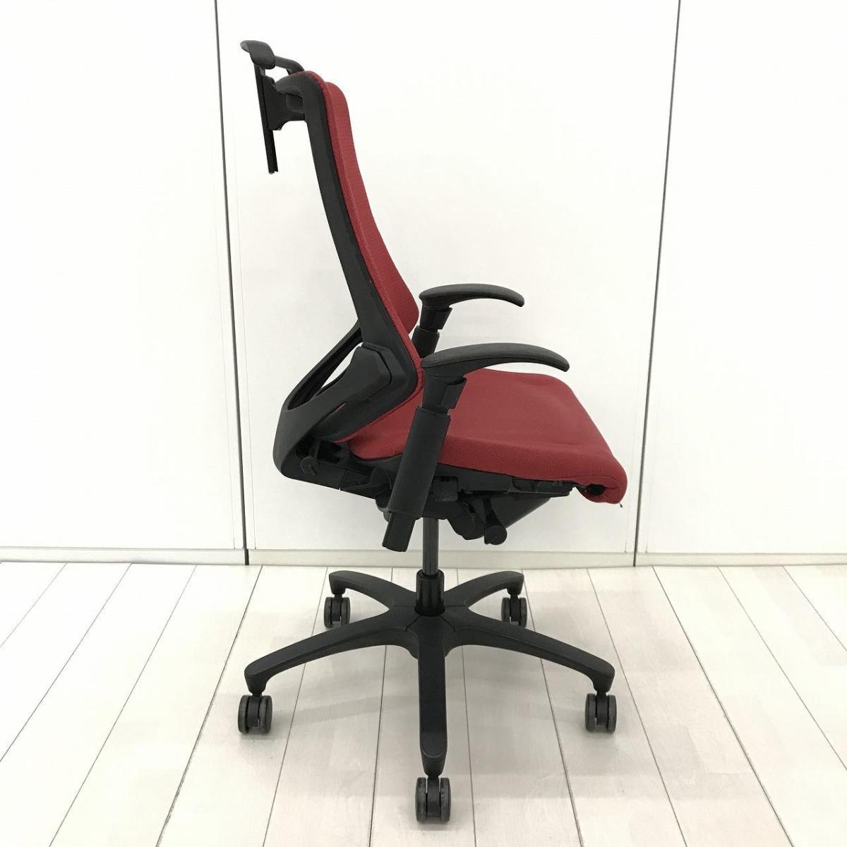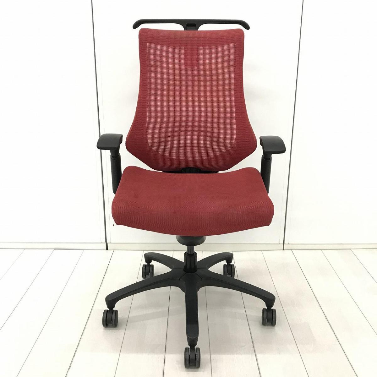 イトーキ エフチェア ハイバック(プレーンメッシュ) ラズベリーレッド×ブラック アジャスタブル肘- 名古屋千種店