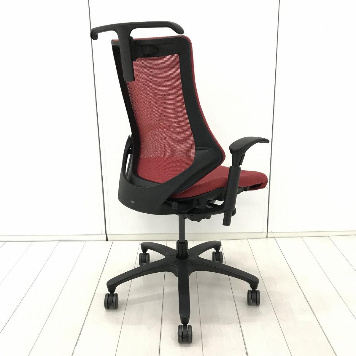【姿勢の変化にフレキシブルに対応!】 ■ITOKI(イトーキ製)エフチェア ハイバック ■固定肘付き メッシュ背面タイプ ■色:ラズベリーレッド×ブラック