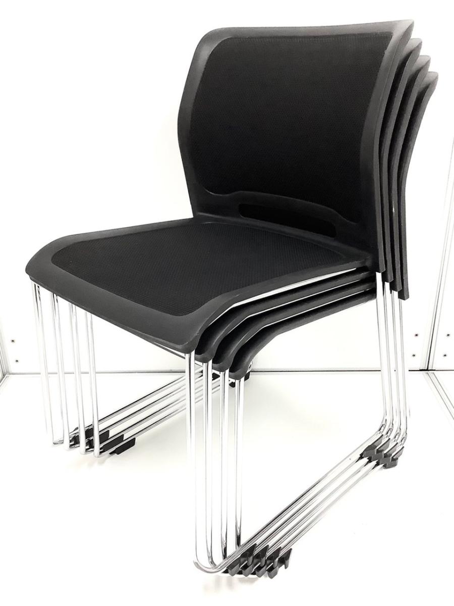 希少/おすすめ/ループ脚 コクヨ(KOKUYO)製 カラベル(Caravel)シリーズ スタッキングチェア ミーティングチェア サークル脚 メッシュ ■ブラック