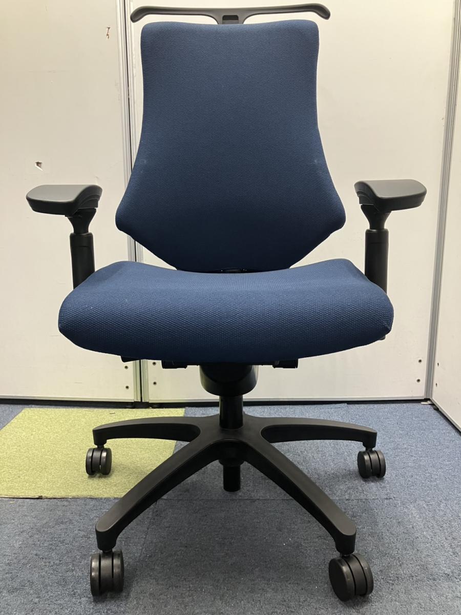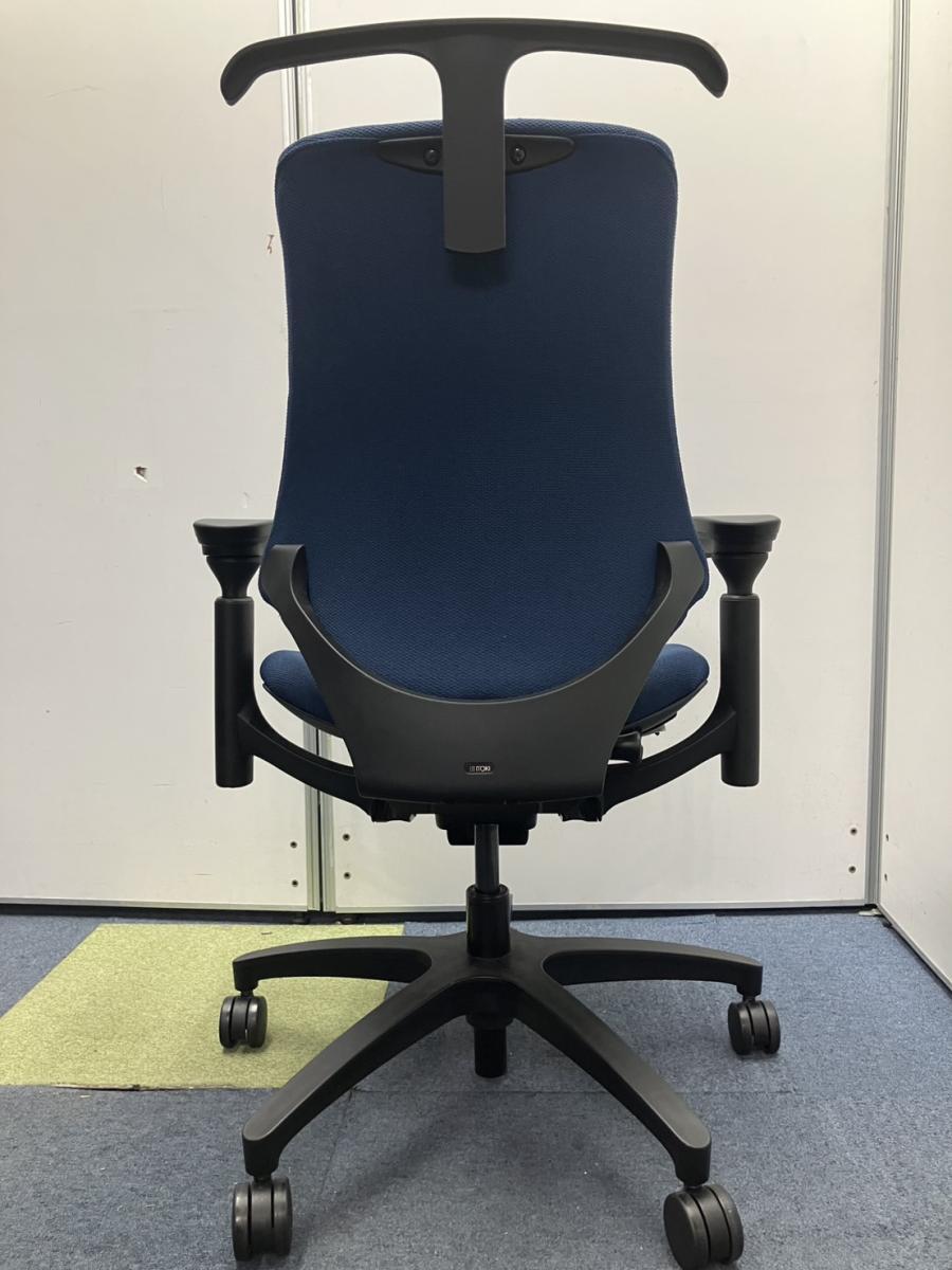 【包み込まれるフィット感!】 ■イトーキ製 エフチェア 肘付 ネイビーブルー ■デスクワークの疲労を軽減!