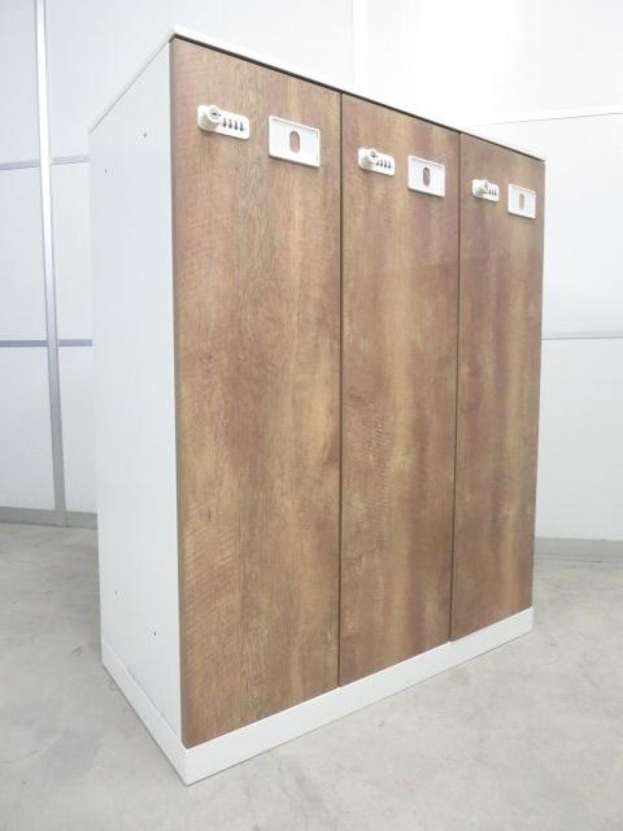 【高品質な木目デザイン!】■オカムラ製 3人用ロッカー ダイヤル錠仕様 ロータイプ- 川崎店