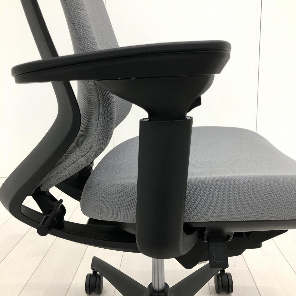 - 高さは上下ストローク100㎜で調節可能。肘掛け部は前後に80㎜調節でき、作業姿勢の変化に柔軟に対応できます。