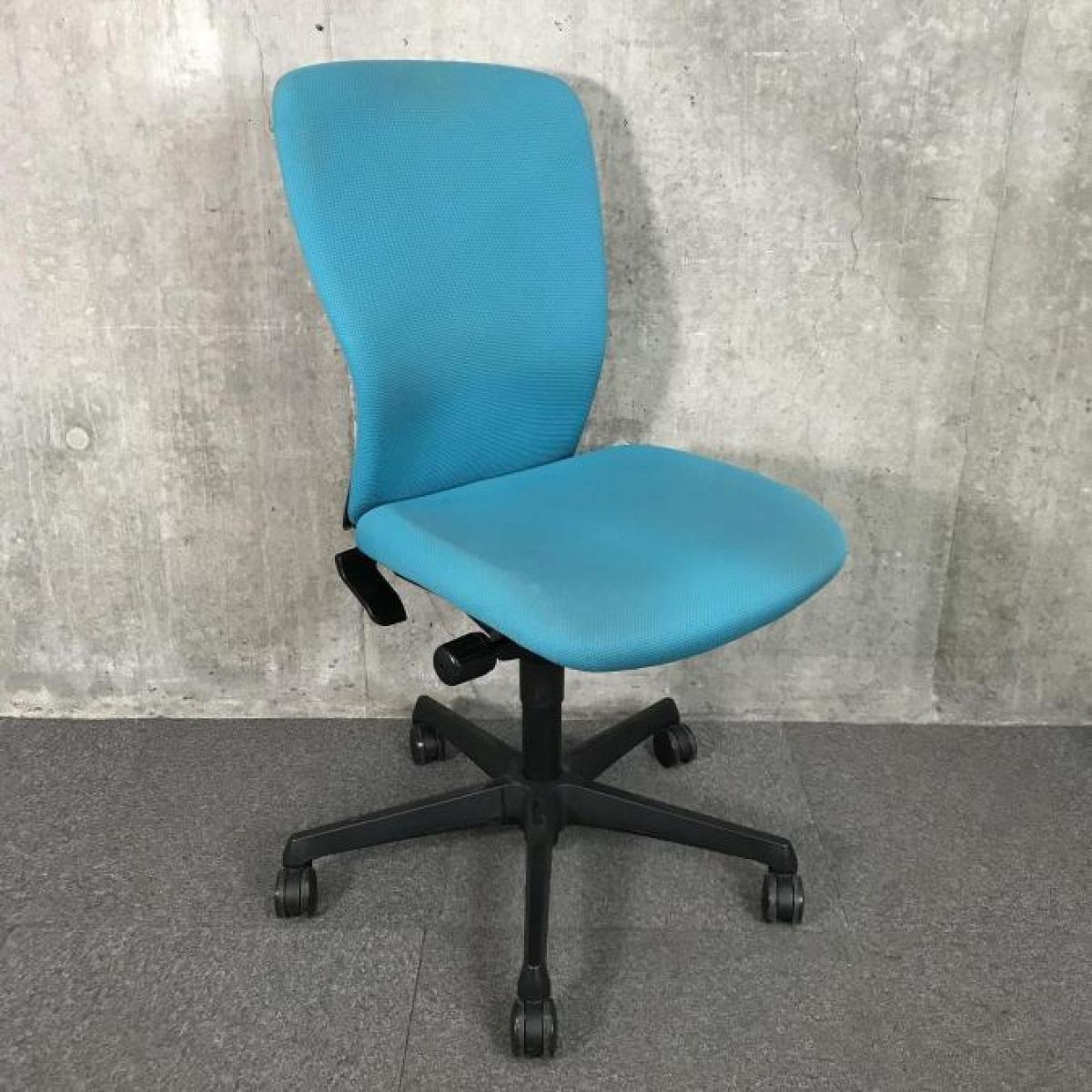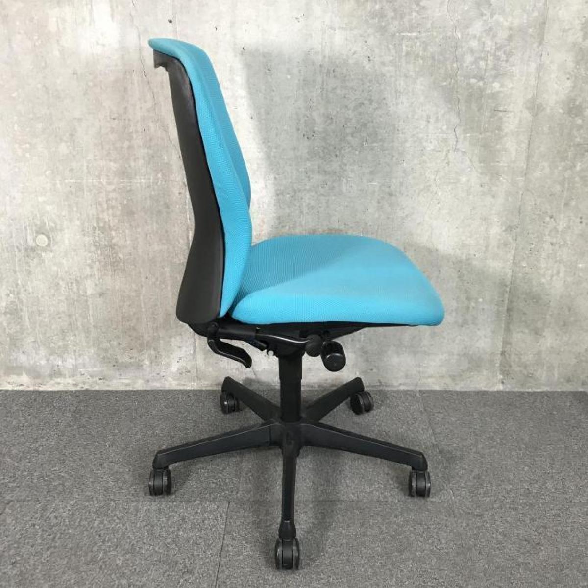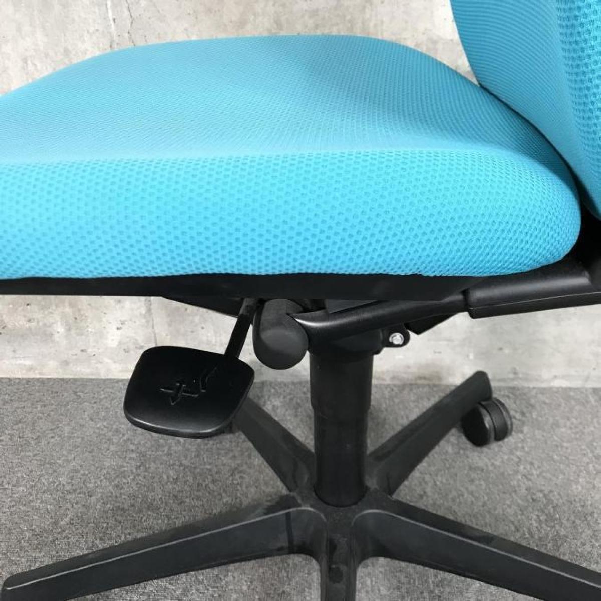 ★【T4】【商品入替のため、残り9脚限り】オカムラ製 スラート ミディアムブルー ブラックフレーム 肘無し ハイバック 肘無しハイバックチェア!!【管理番号:A01039458】