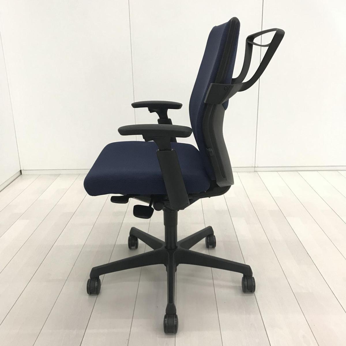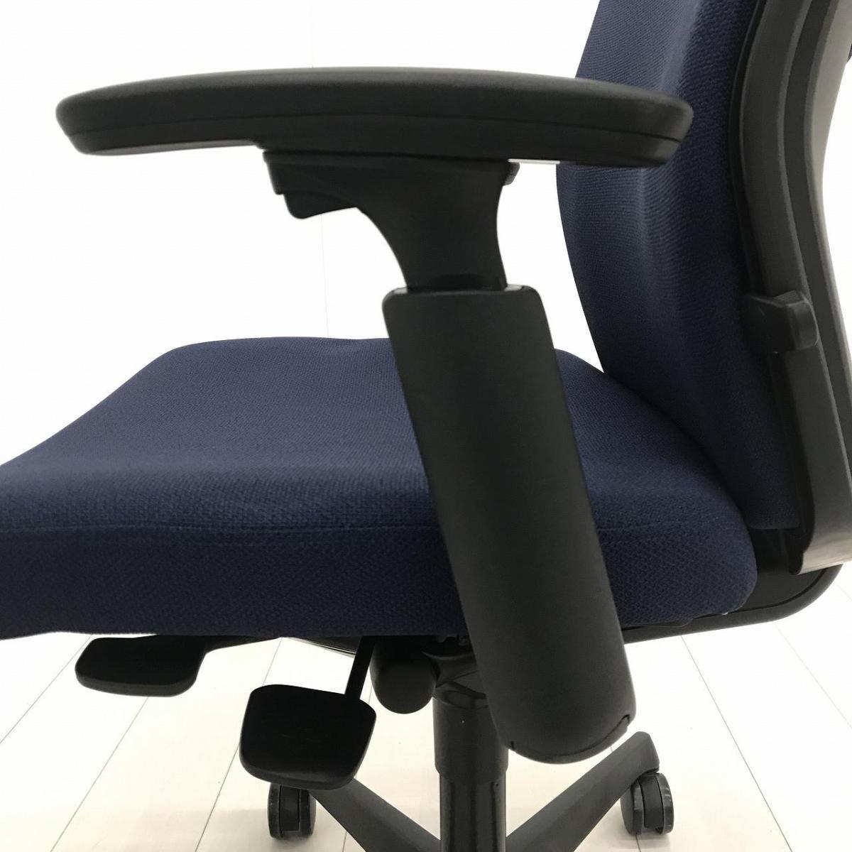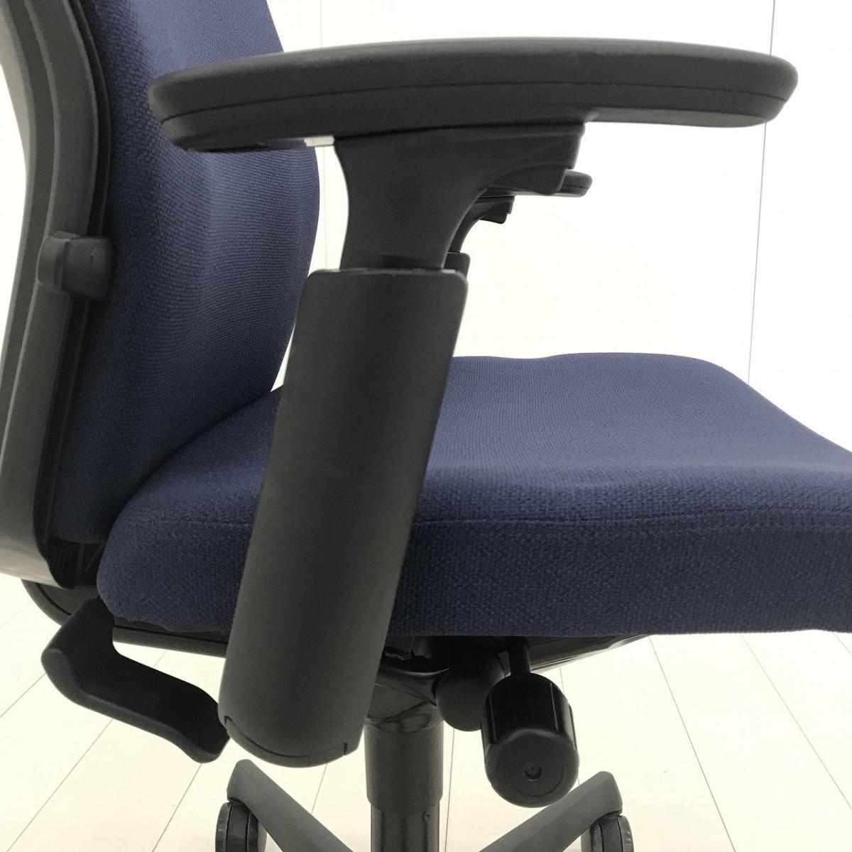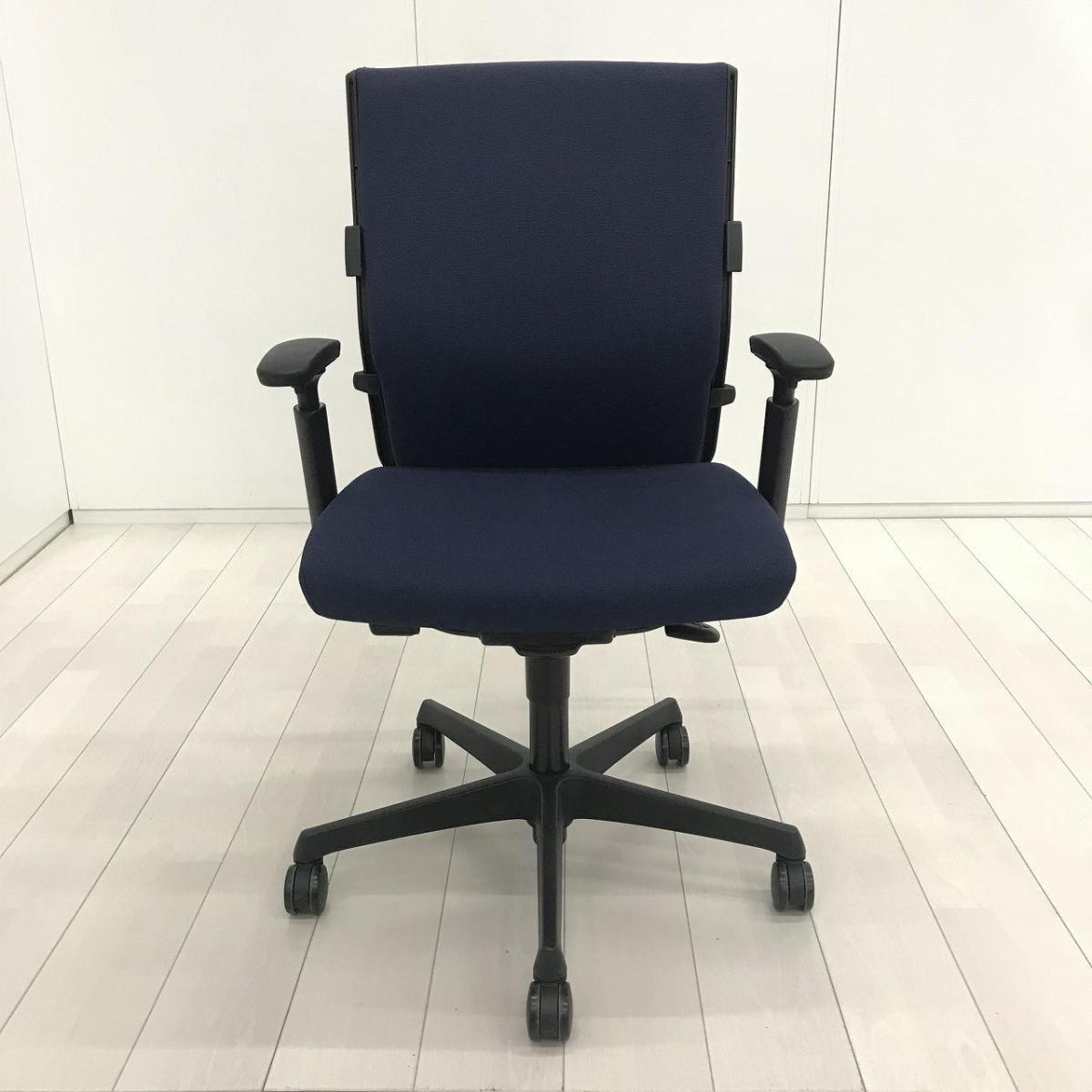 【長時間のデスクワークもランバーが快適にサポート!オカムラ製の人気チェアが入荷!】■オカムラ(okamura)製 エスクード(ESCUDO)チェア 肘付ハイバック ■可動肘 ■ダークブルー×グレーシェル【2601】弊社使用欄【A01056520】